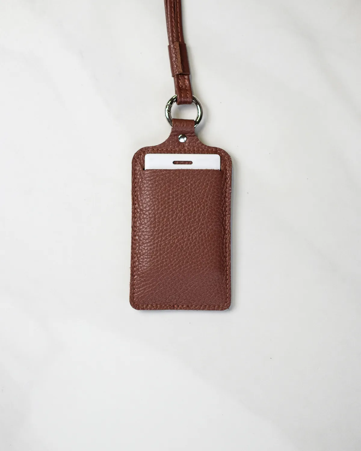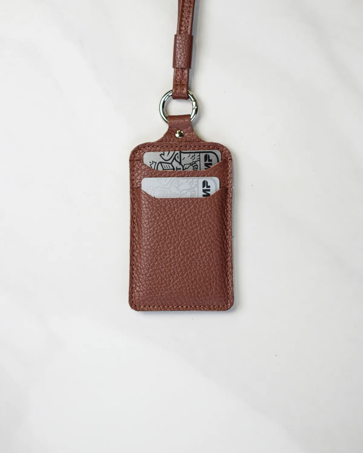 Чехол для пропуска со съёмным ремешком. Выполнен из натуральной кожи с выраженной зернистой фактурой. Имеет 2 кармашка с лицевой стороны и один с задней. Кольцо-карабин позволяет снять ремешок и закрепить чехол на джинсах или рюкзаке. Длина ремешка в сложенном виде — 50 см. Универсальный формат подходит для различных магнитных пропусков и банковских карт с функцией бесконтактной оплаты.