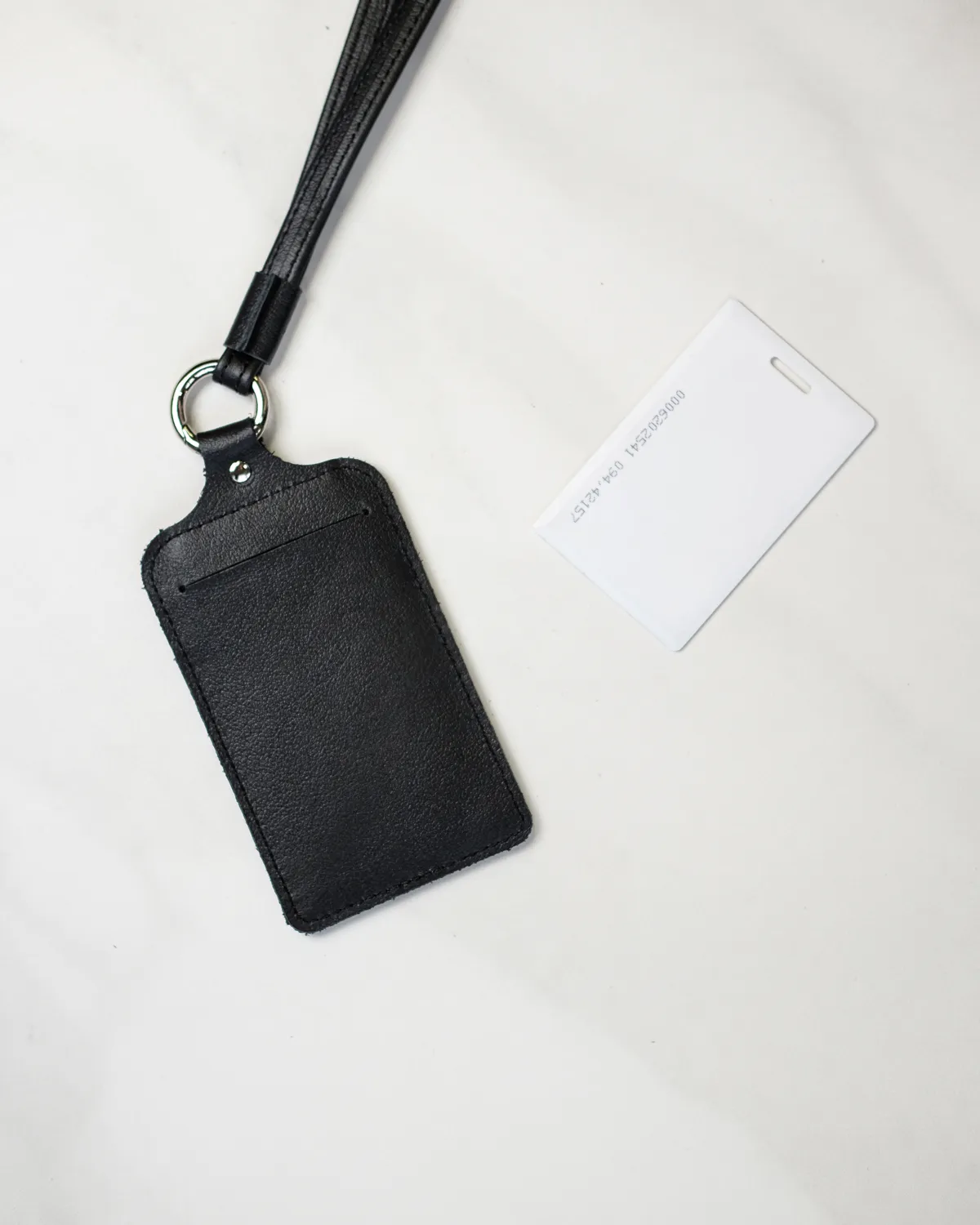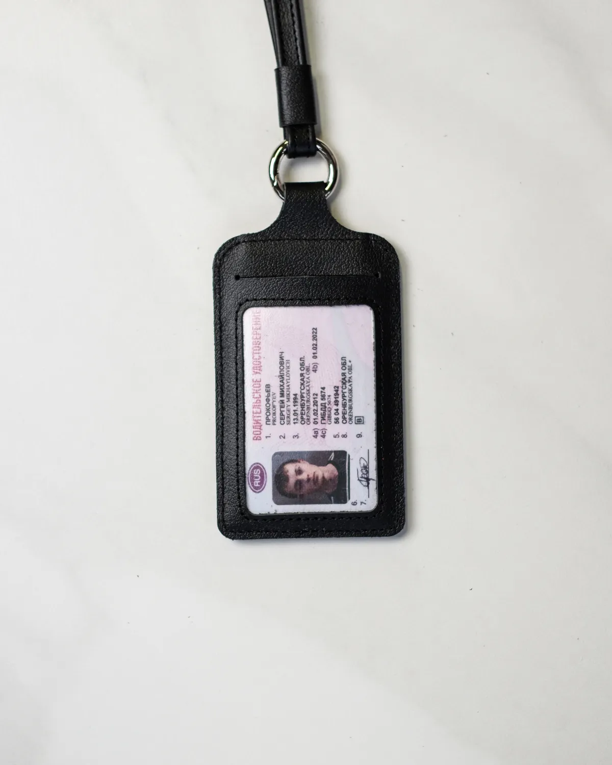 Чехол для пропуска с прозрачным окошком и съёмным ремешком. Выполнен из натуральной гладкой кожи. Благодаря кольцу-карабину ремешок легко отстёгивается, а сам чехол можно закрепить на джинсах или рюкзаке. Длина ремешка в сложенном виде составляет 50 см. Подходит для хранения пропуска и использования в качестве бейджа на выставках, конференциях и других мероприятиях.