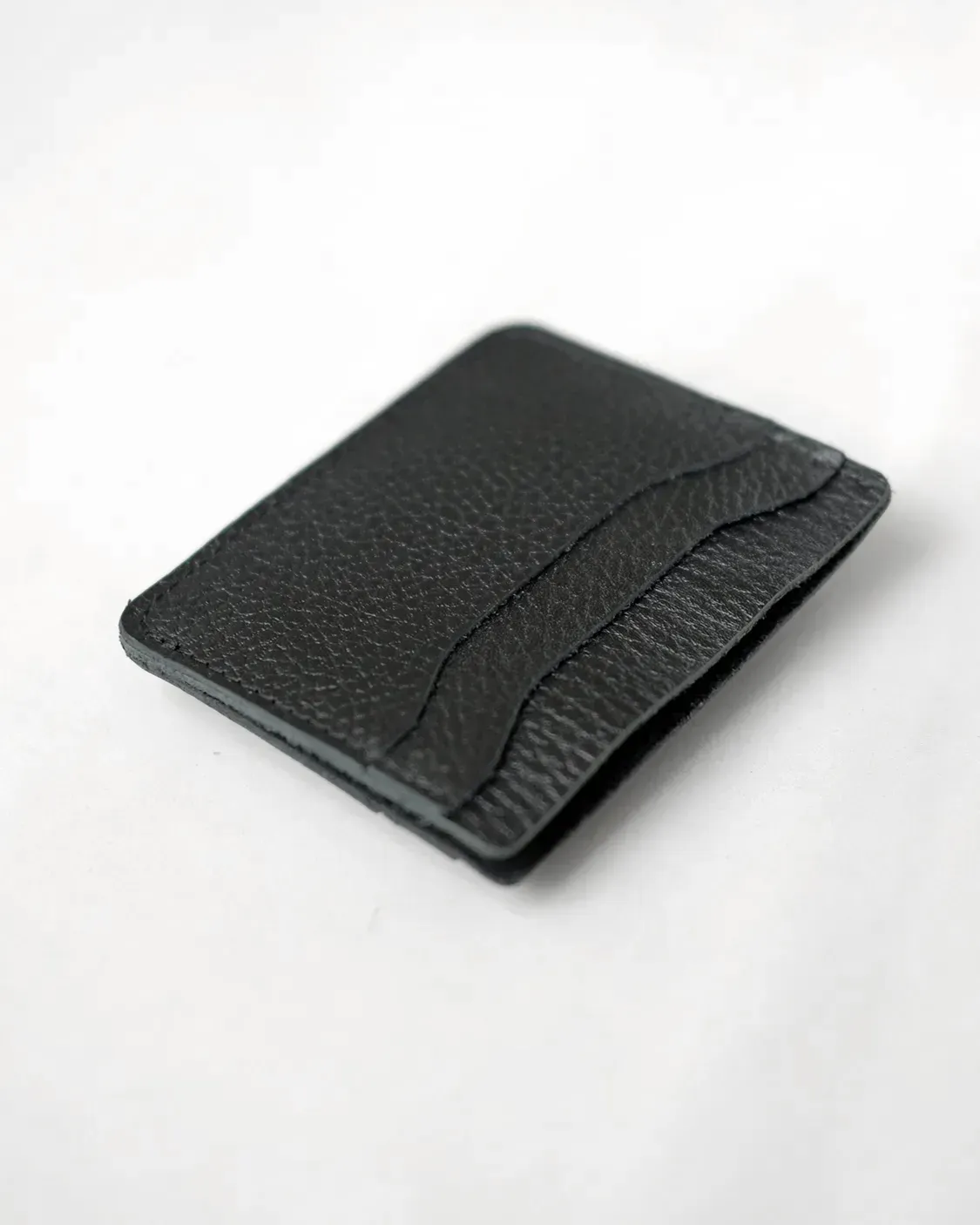 Компактный кожаный холдер для пластиковых карт и купюр, можно носить в кармане джинсов. 4 кармашка для пластиковых карт и одно отделение для купюр, сложенных пополам. Правая сторона картхолдера без прошивки, чтобы было удобнее вкладывать и доставать наличные.