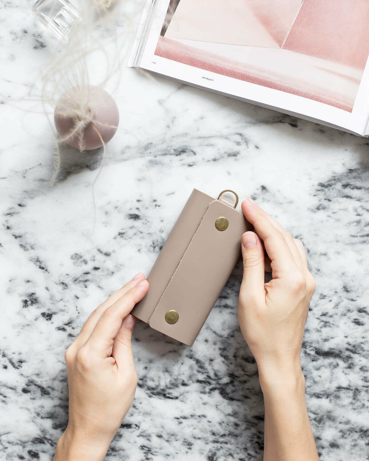 Нанесите инициалы, имя, монограмму или другой текст на кожаную ключницу — надпись будет располагаться снаружи между кнопок, поместится 1-3 слова. У гравировки нет ярких цветов, она выжигается лазером. Нажмите кнопку Купить — в открывшемся окне будут варианты дизайна гравировки на выбор. Там же можно ввести свой текст. После оформления заказа вы получите письмо с макетом, чтобы всё проверить перед нанесением гравировки.