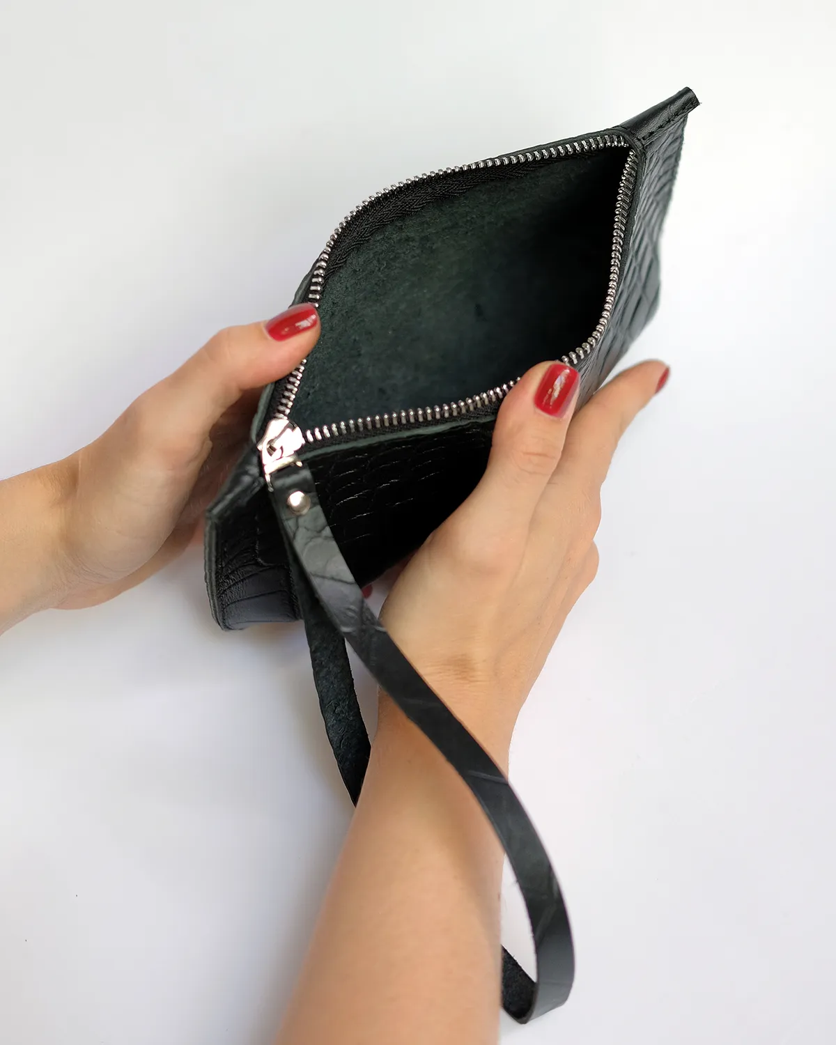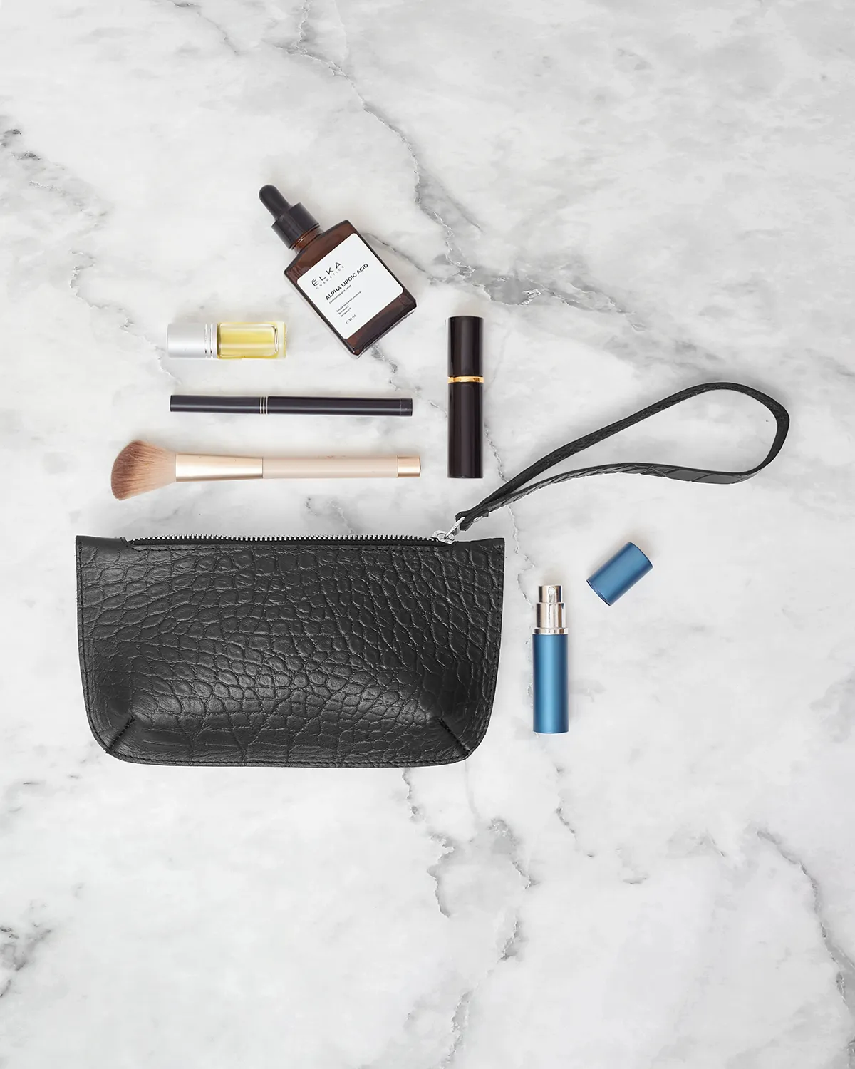 Мини-несессер из толстой кожи под рептилию станет незаменимым аксессуаром для повседневного использования. Одно основное отделение для хранения косметики, мелочей, канцелярии или дорожных принадлежностей. Удобно брать с собой в сумку, рюкзак или чемодан.