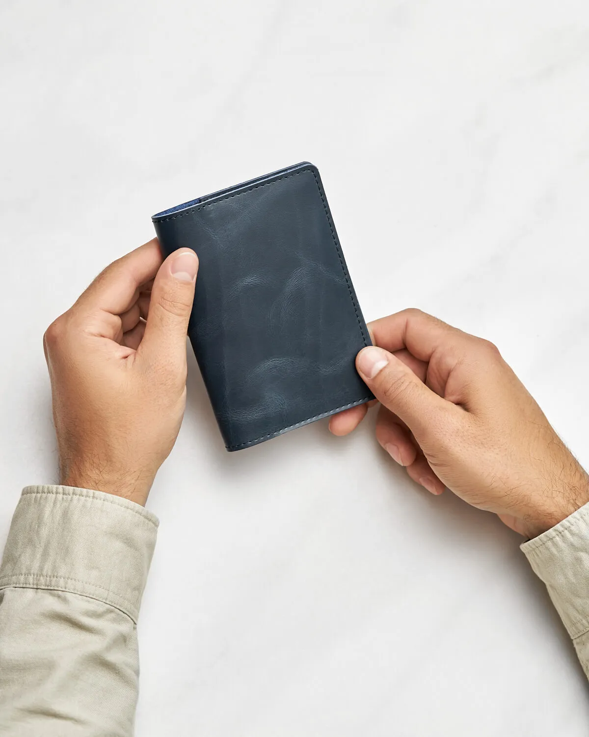Кожа Pool с естественной гладкой поверхностью, матовая, с мраморным рисунком и плавными цветовыми переходами. Со временем будет приобретать следы использования, в местах сгибов кожа становится светлее и красиво меняется со временем.