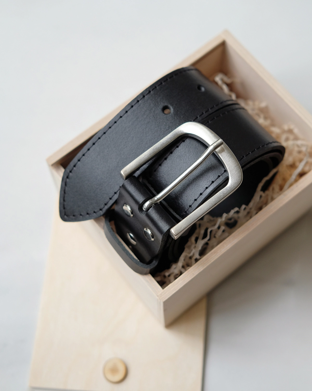 Мужской ремень для джинсов из цельной плотной натуральной кожи.