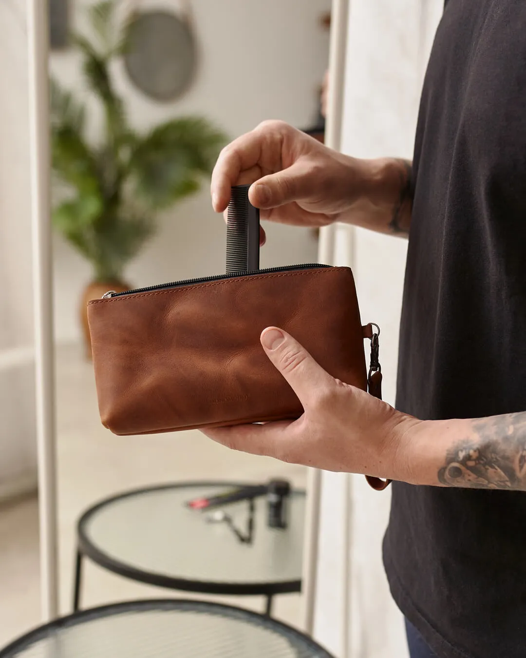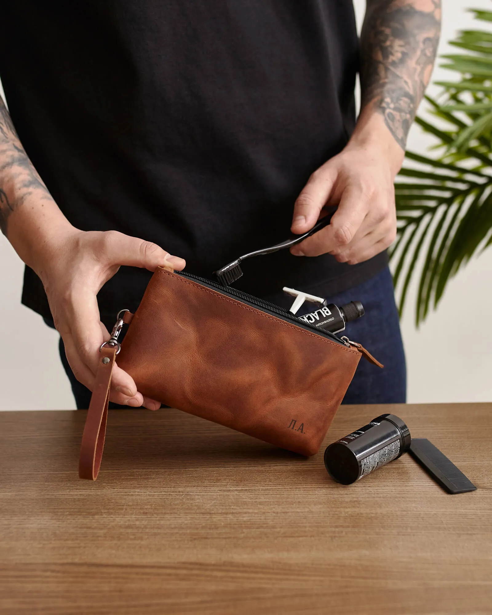 Мини-несессер можно использовать как косметичку, пенал или универсальный футляр для мелочей. Изготовлен из натуральной кожи, закрывается на молнию, внутри подкладка. Есть съемная ручка для переноски. Одно основное отделение для косметических средств — зубной пасты и щетки, туши для ресниц, расчески и других повседневных вещей.