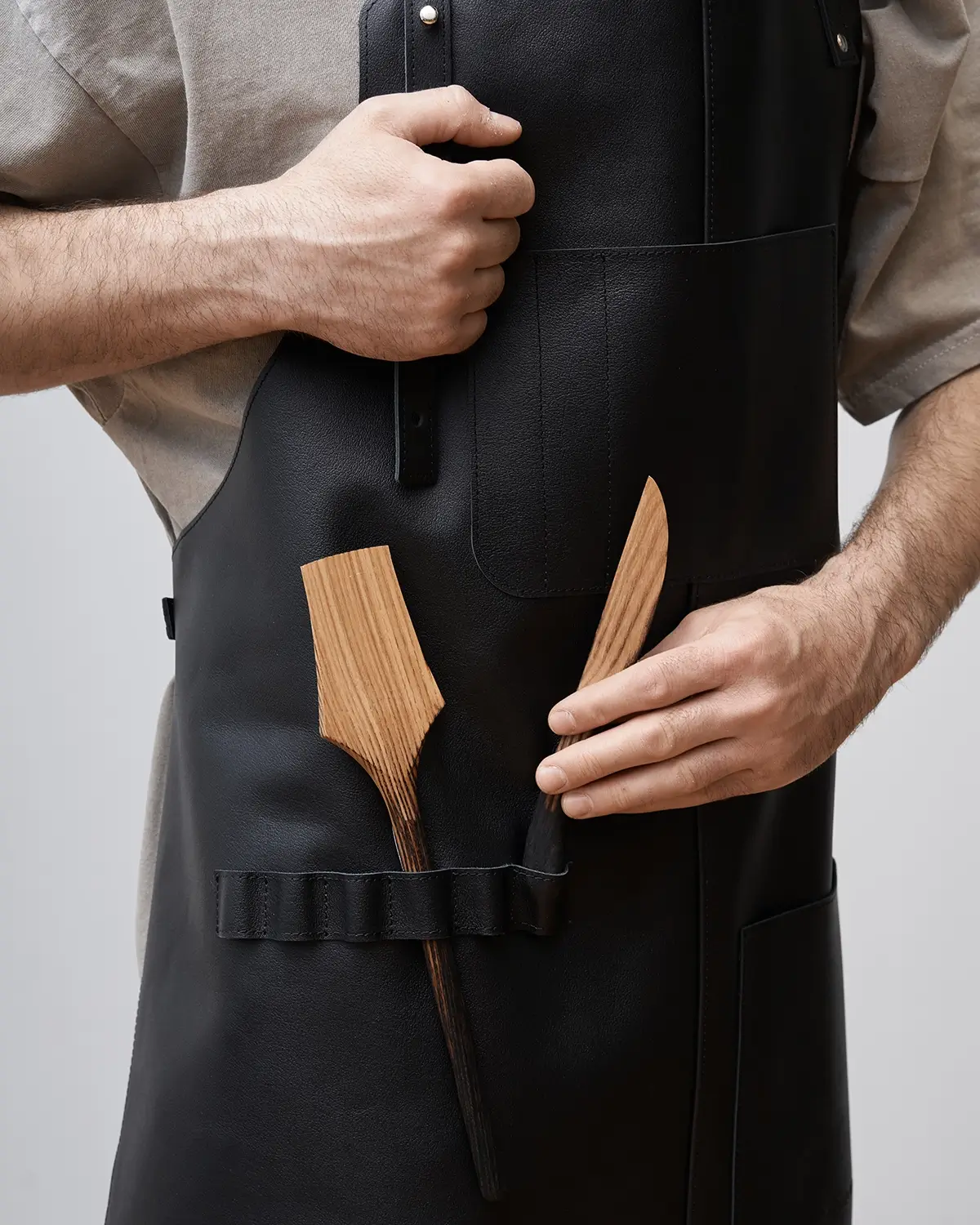 Фартук из натуральной кожи подходит для кухни, работы в мастерской, барбекю.