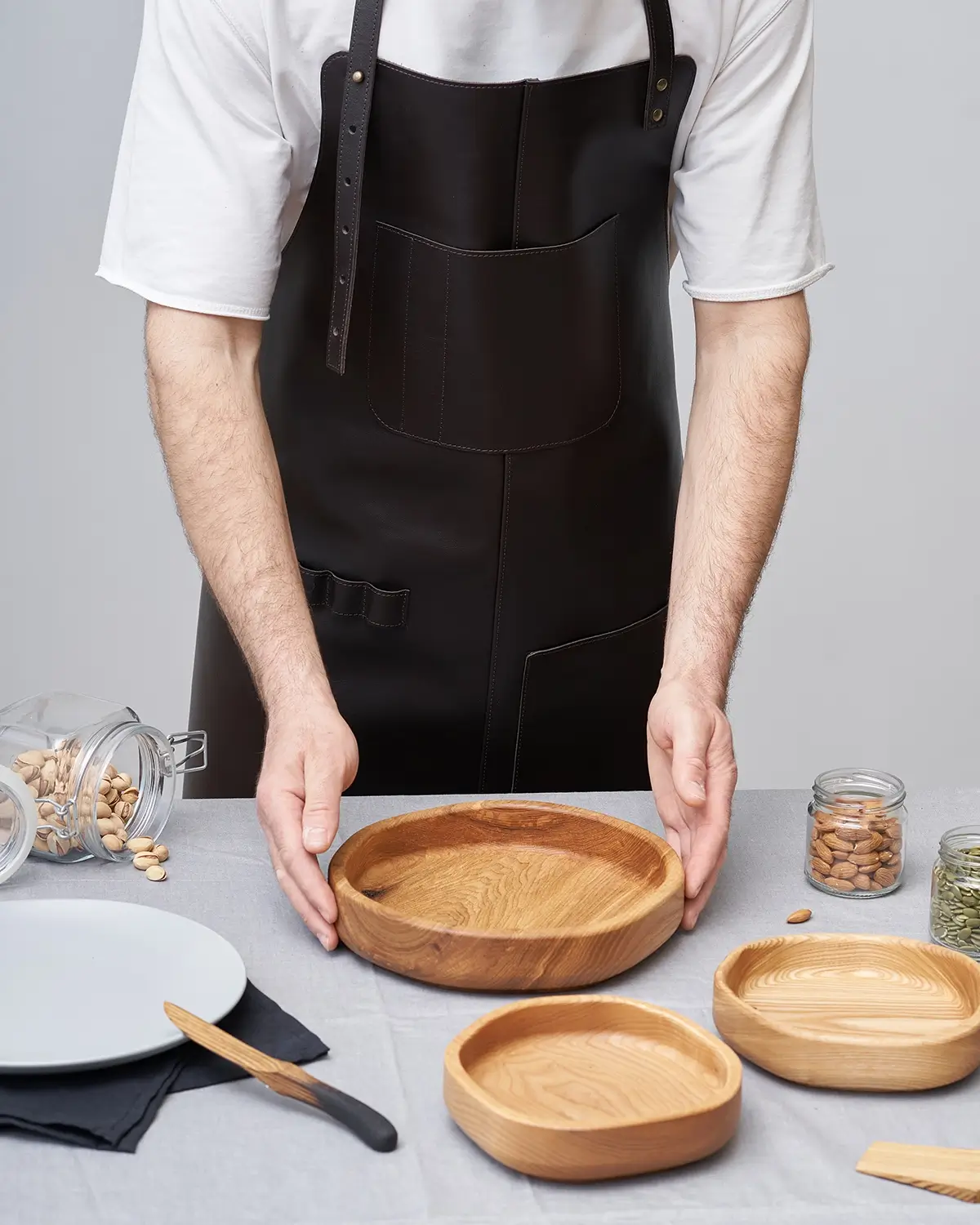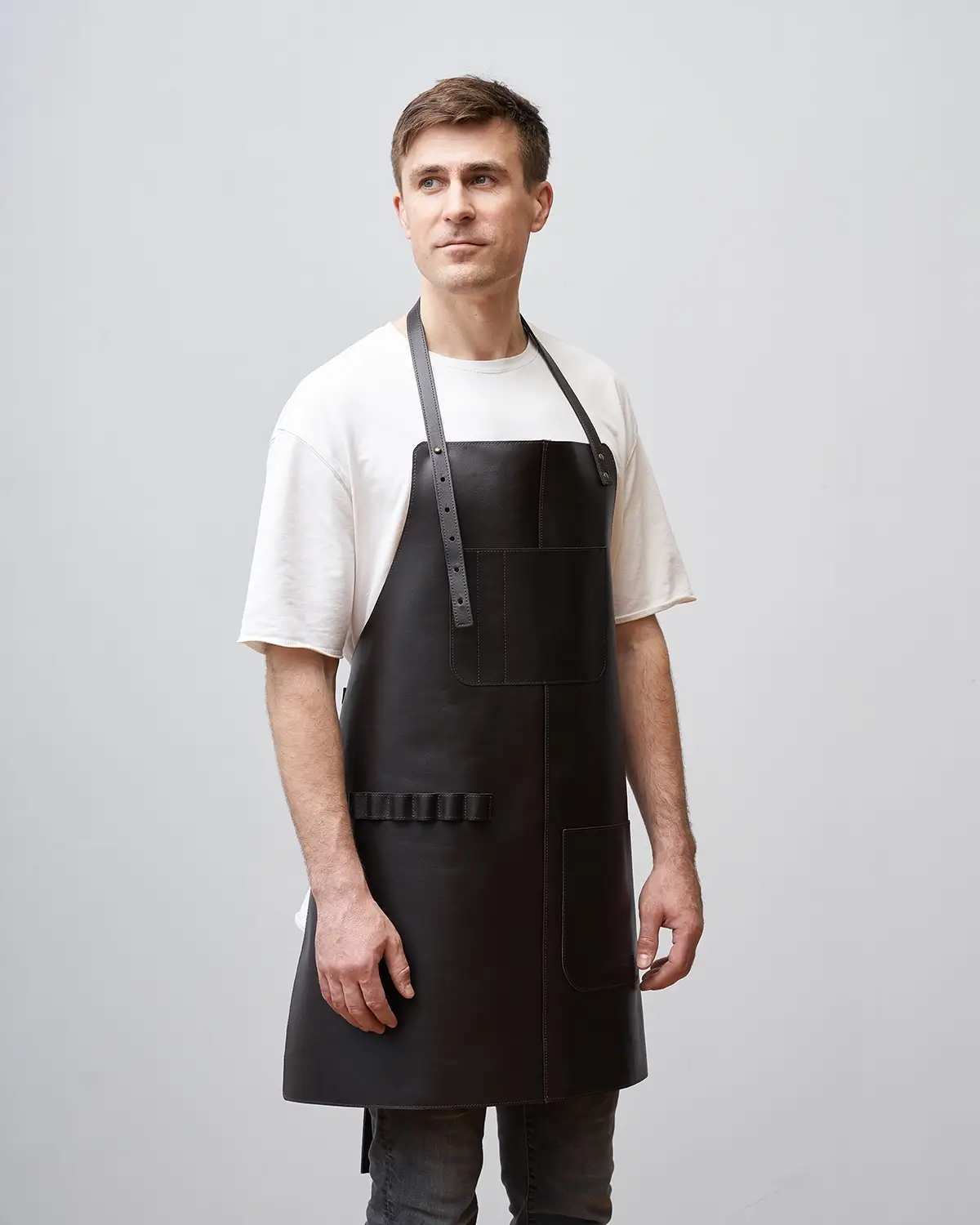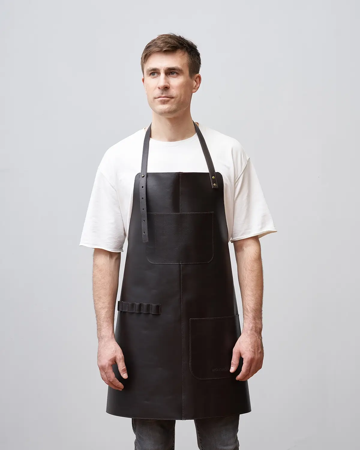 Фартук из натуральной кожи подходит для кухни, работы в мастерской, барбекю.