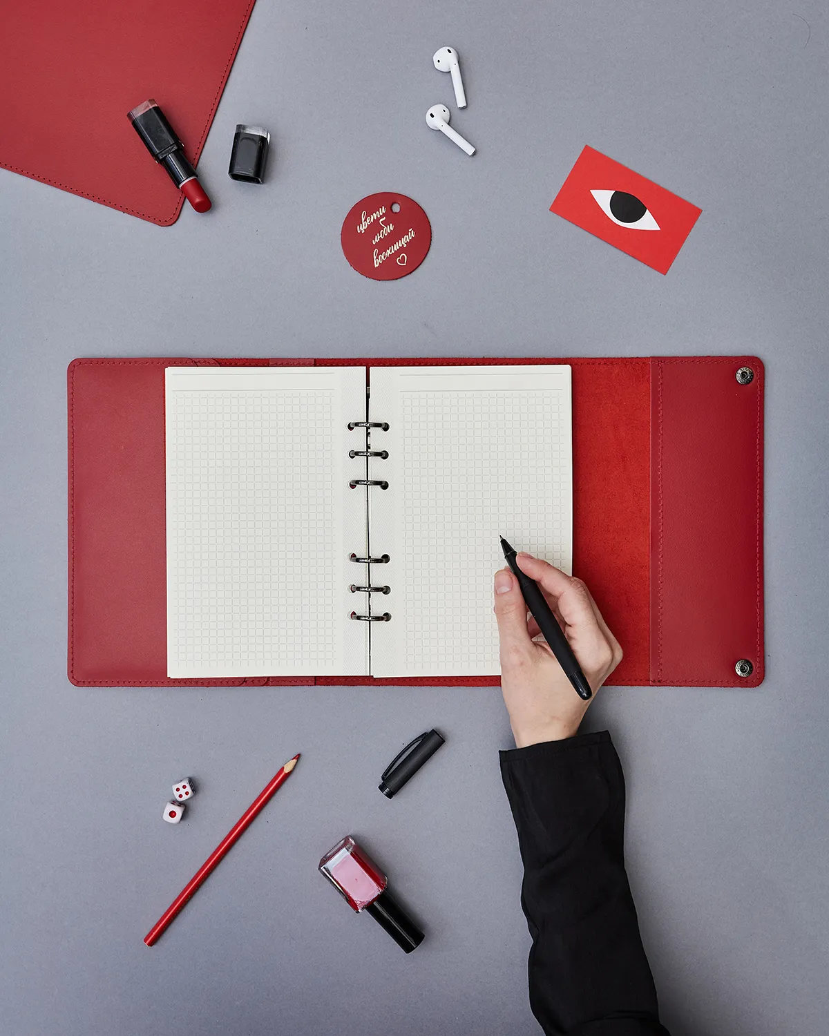 Кожаный блокнот на кольцах со сменными листами.