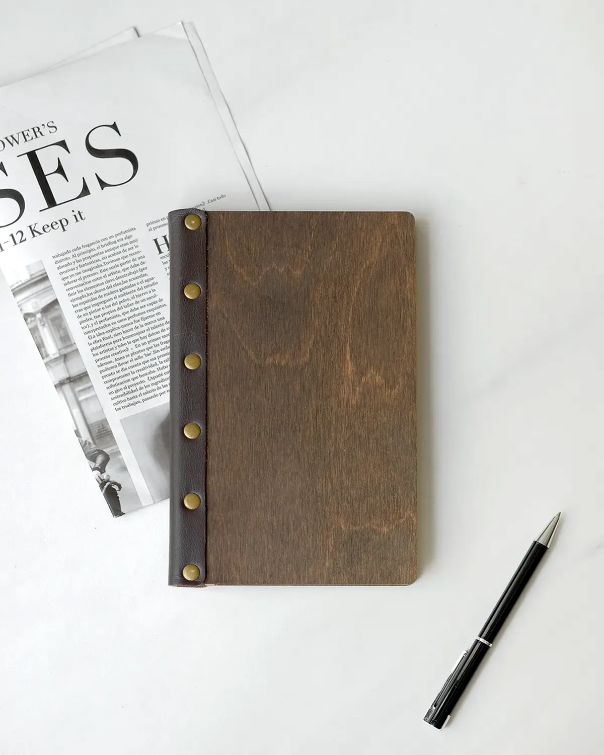 Толщина деревянной обложки около 3 мм, она не утяжеляет блокнот.