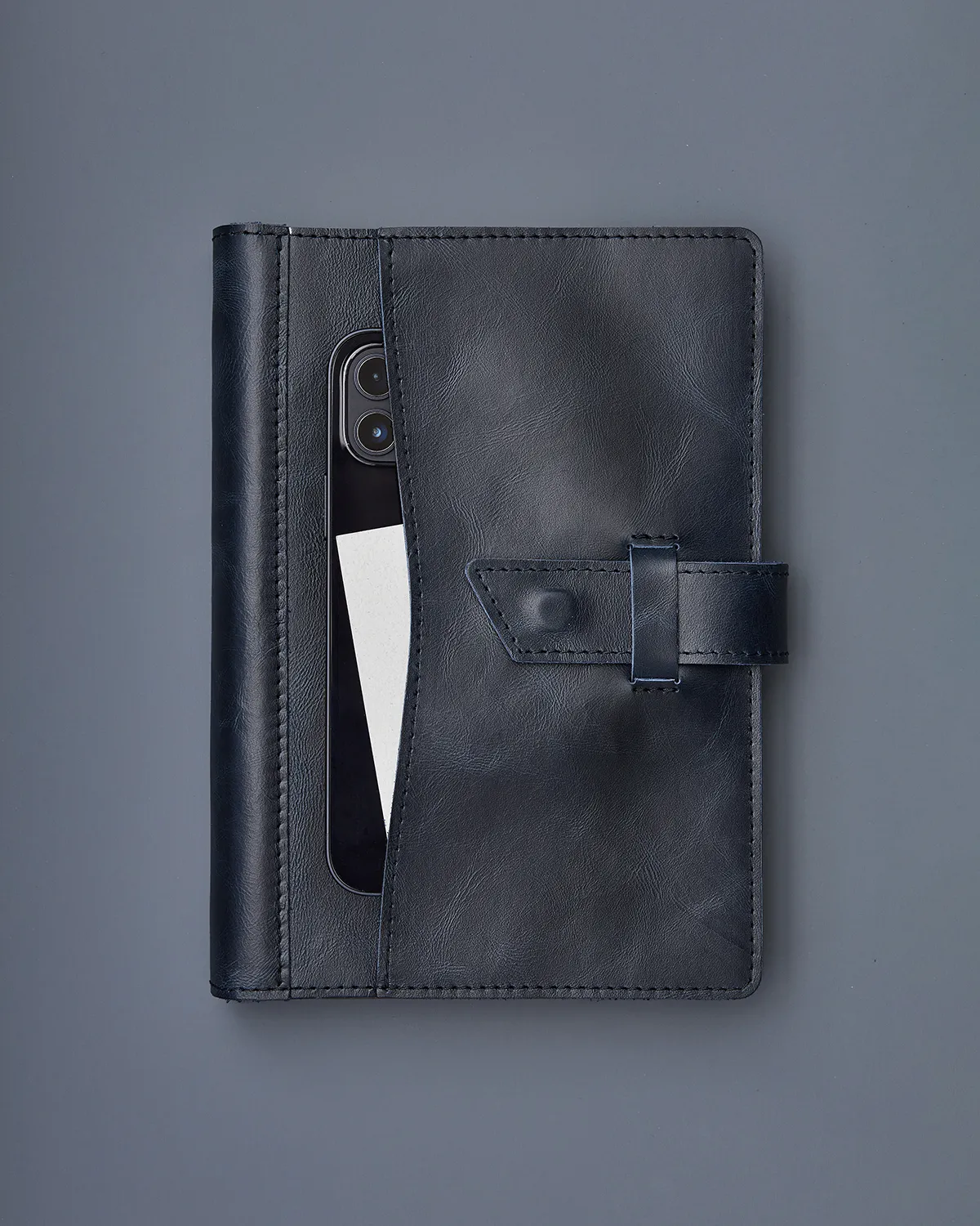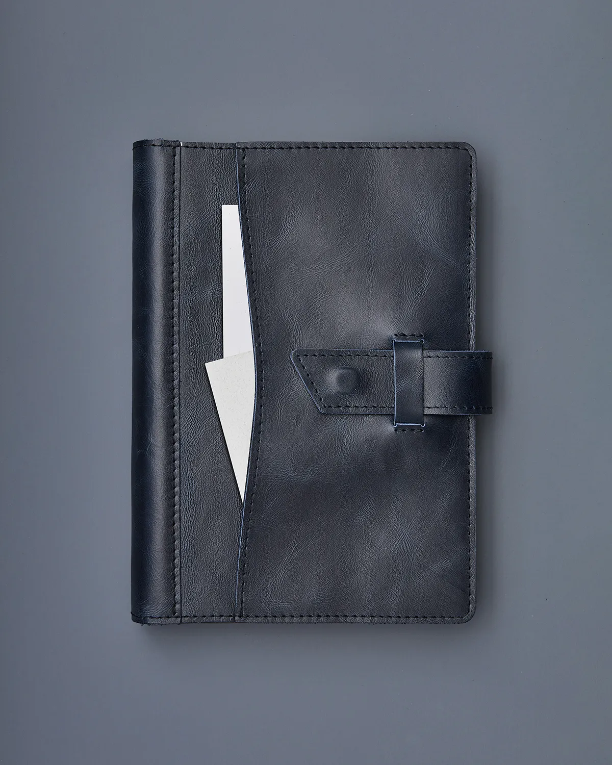 Ежедневник из натуральной кожи с кармашком спереди. Хлястик на магнитной кнопке не даёт ежедневнику случайно раскрыться в сумке и защищает срез и уголки страниц от загибов и сминания.