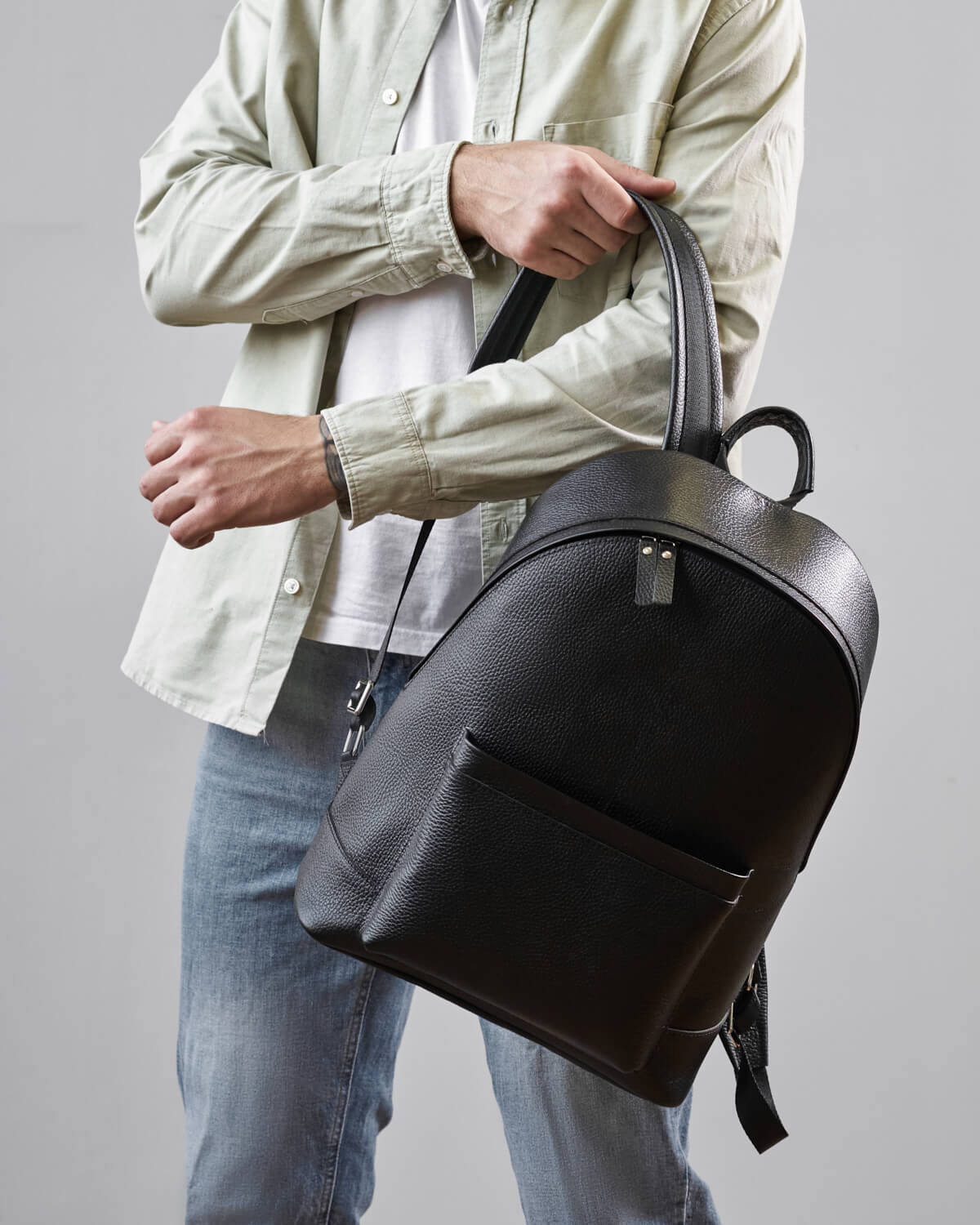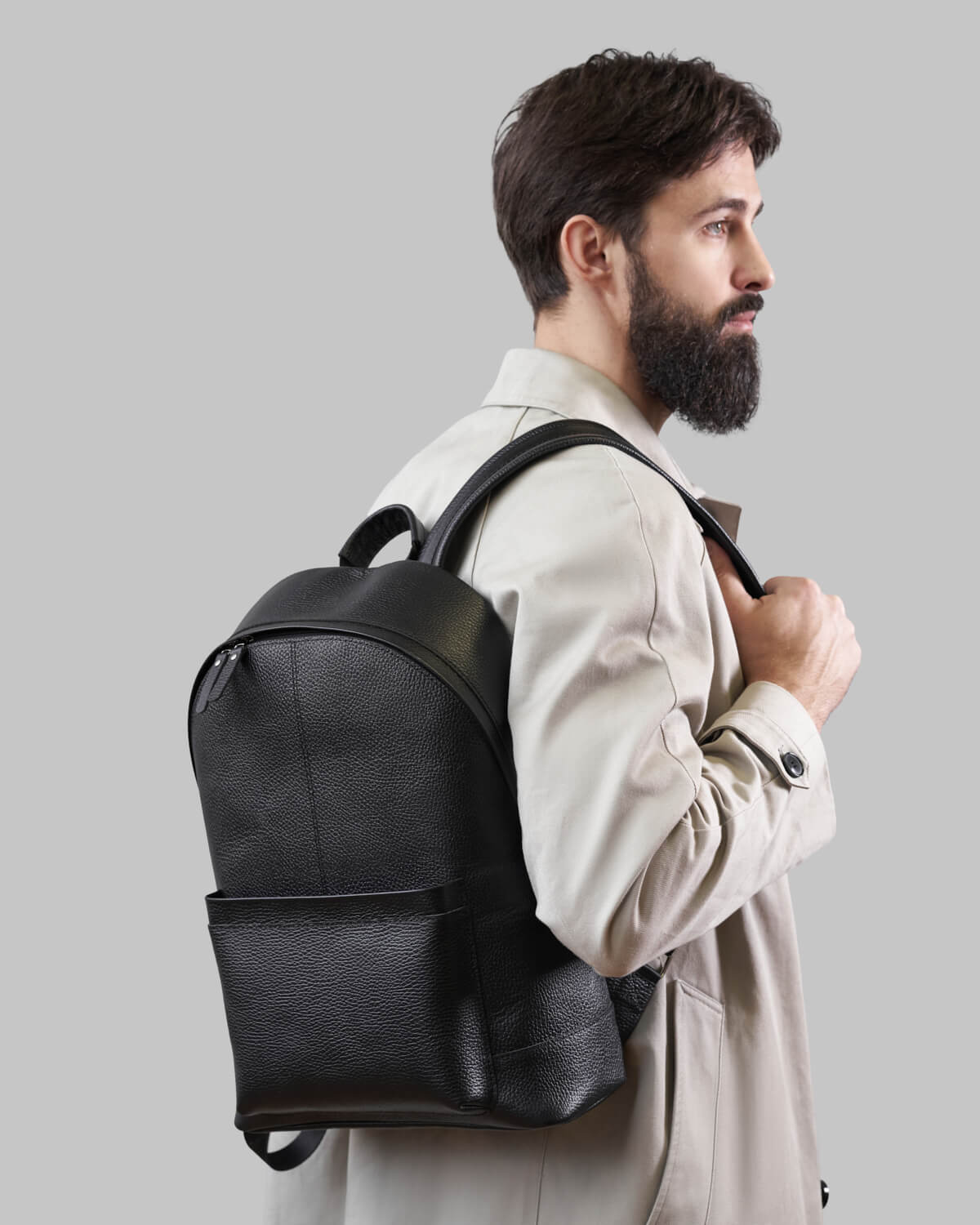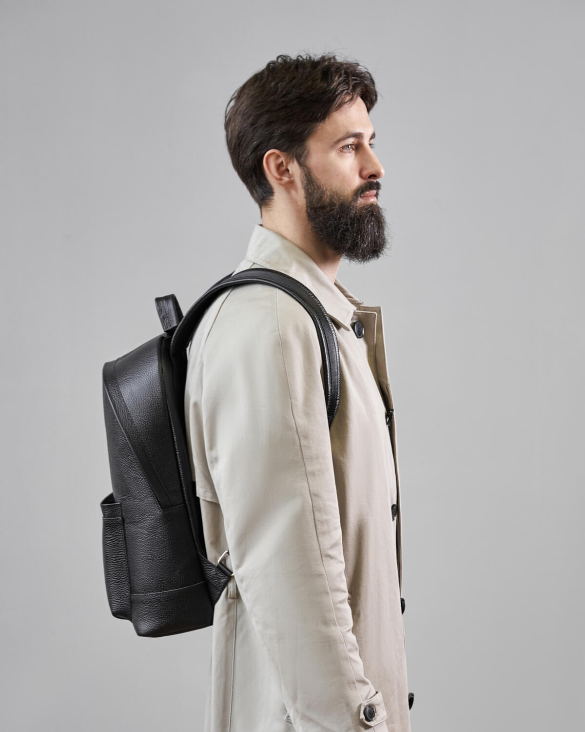 Рюкзак изготовлен из натуральной кожи, держит форму без дополнительного каркаса. При долгосрочном использовании кожа становится более мягкой. Подходит на каждый день и для коротких путешествий. Вмещает спортивную форму, бутылочку воды, документы формата А4, 15-дюймовый ноутбук и необходимый минимум для поездки на пару дней.