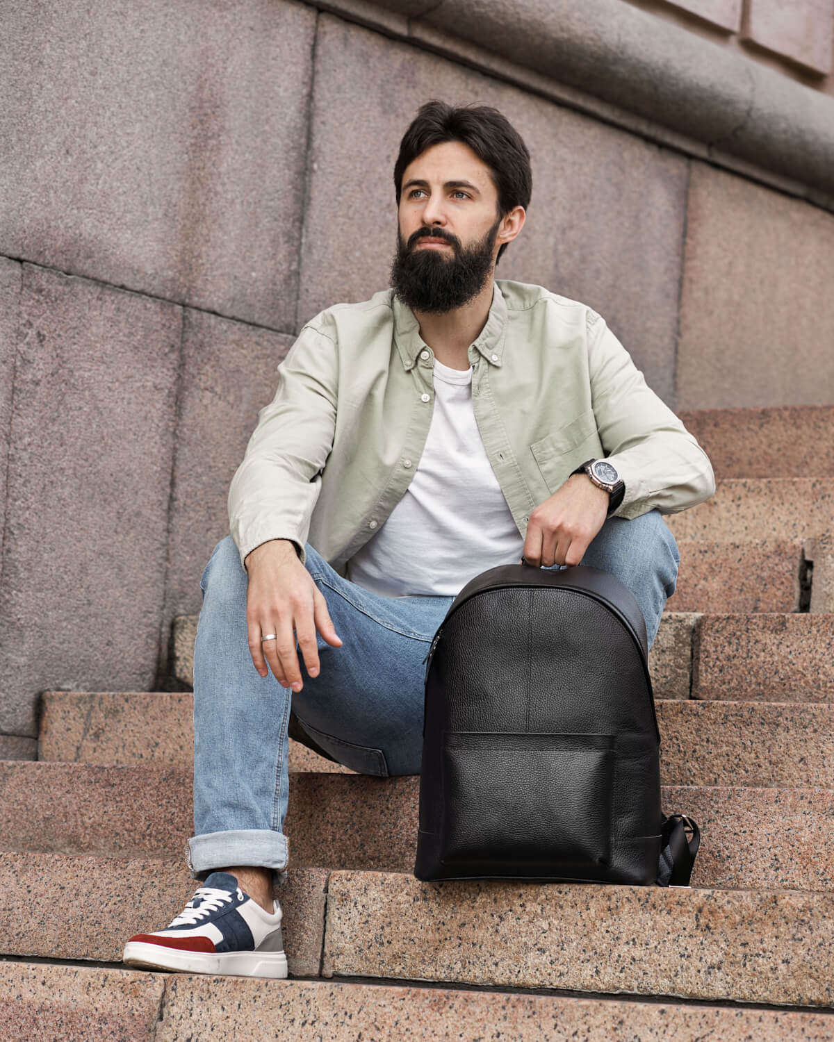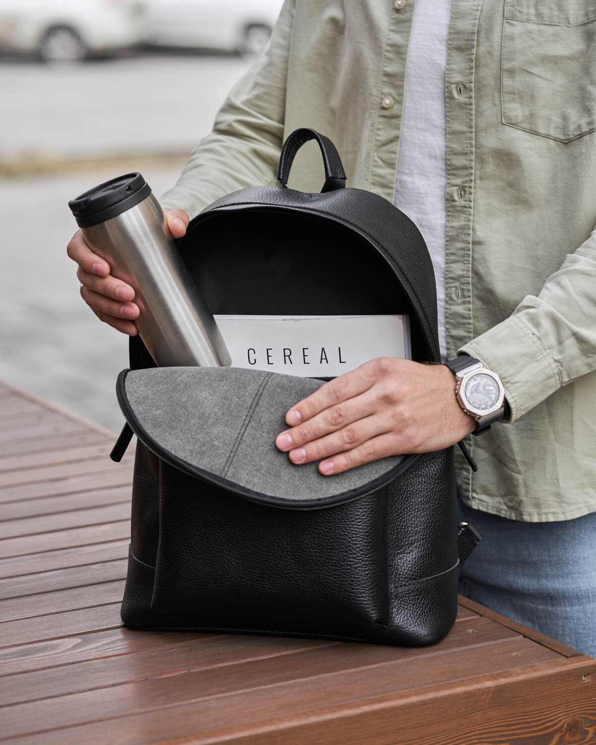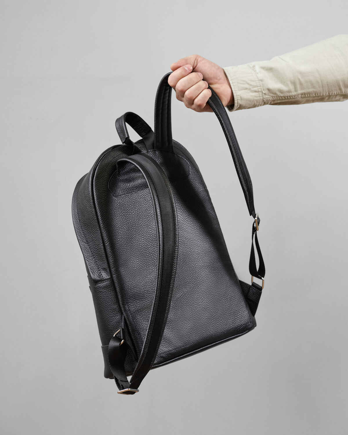 Рюкзак изготовлен из натуральной кожи, держит форму без дополнительного каркаса. При долгосрочном использовании кожа становится более мягкой. Подходит на каждый день и для коротких путешествий. Вмещает спортивную форму, бутылочку воды, документы формата А4, 15-дюймовый ноутбук и необходимый минимум для поездки на пару дней.