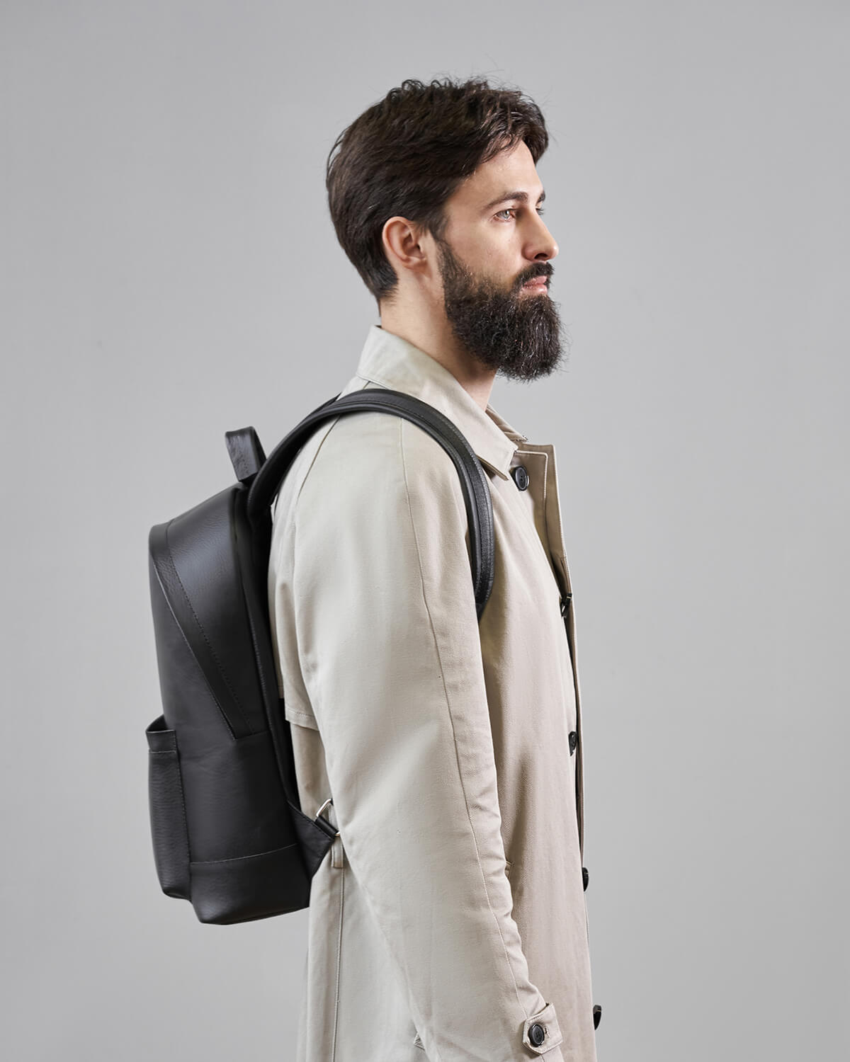 Рюкзак изготовлен из натуральной кожи, держит форму без дополнительного каркаса. При долгосрочном использовании кожа становится более мягкой. Подходит на каждый день и для коротких путешествий. Вмещает спортивную форму, бутылочку воды, документы формата А4, 15-дюймовый ноутбук и необходимый минимум для поездки на пару дней.