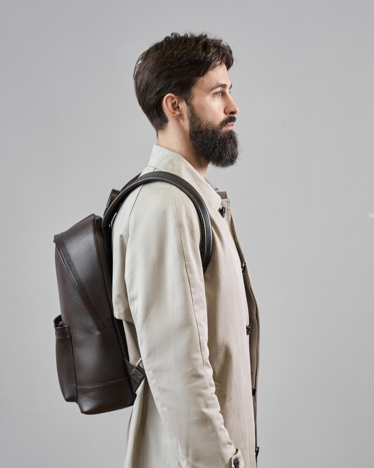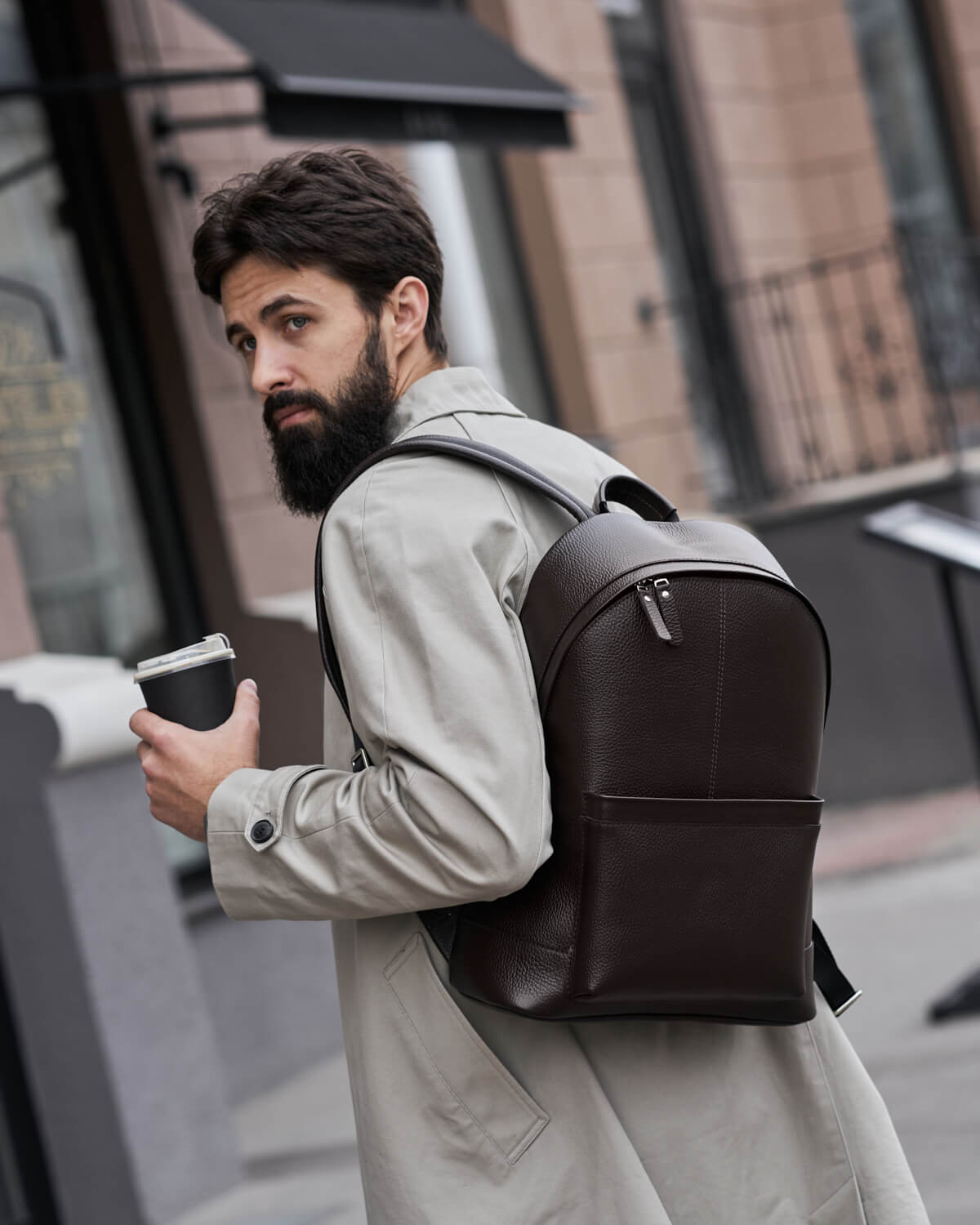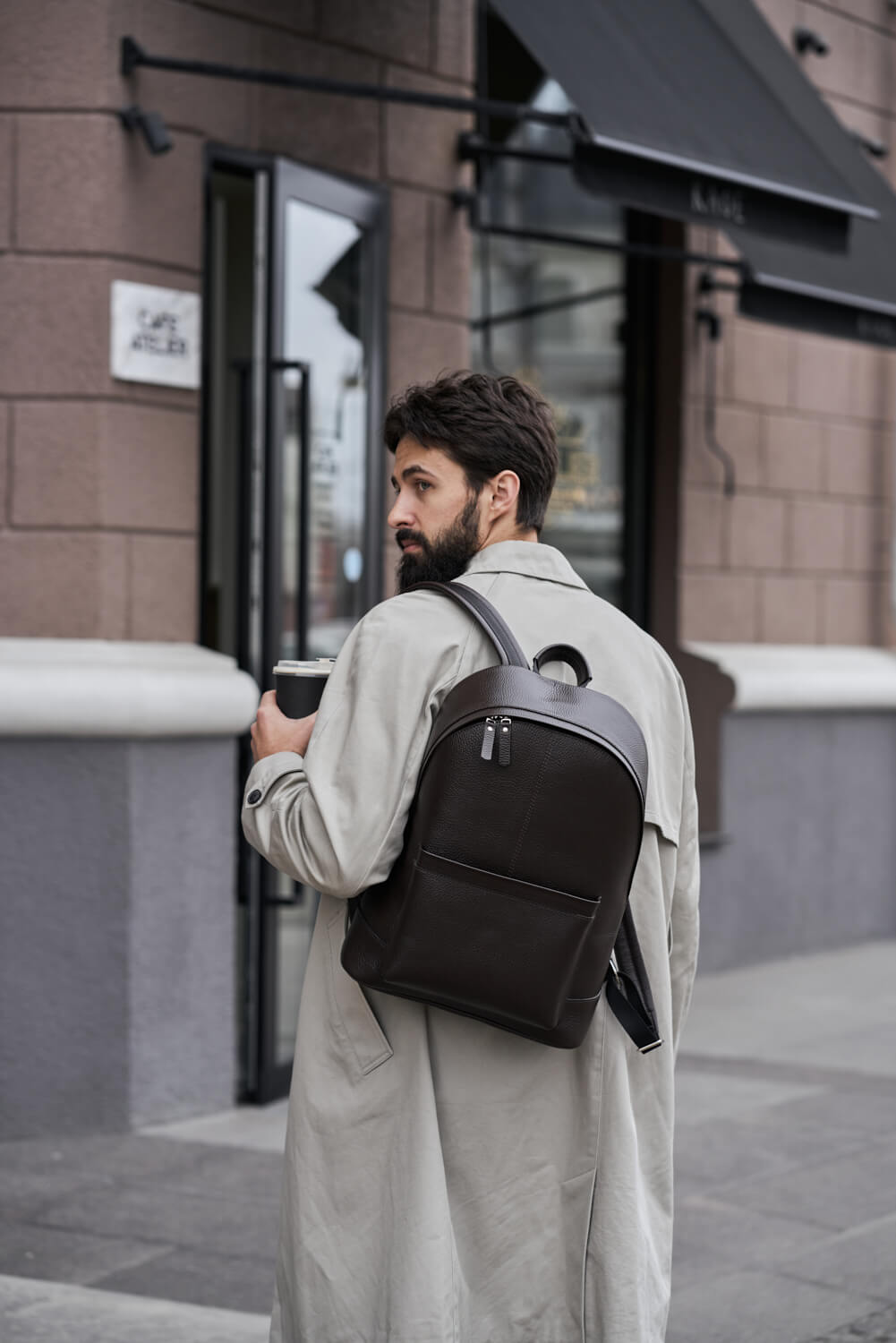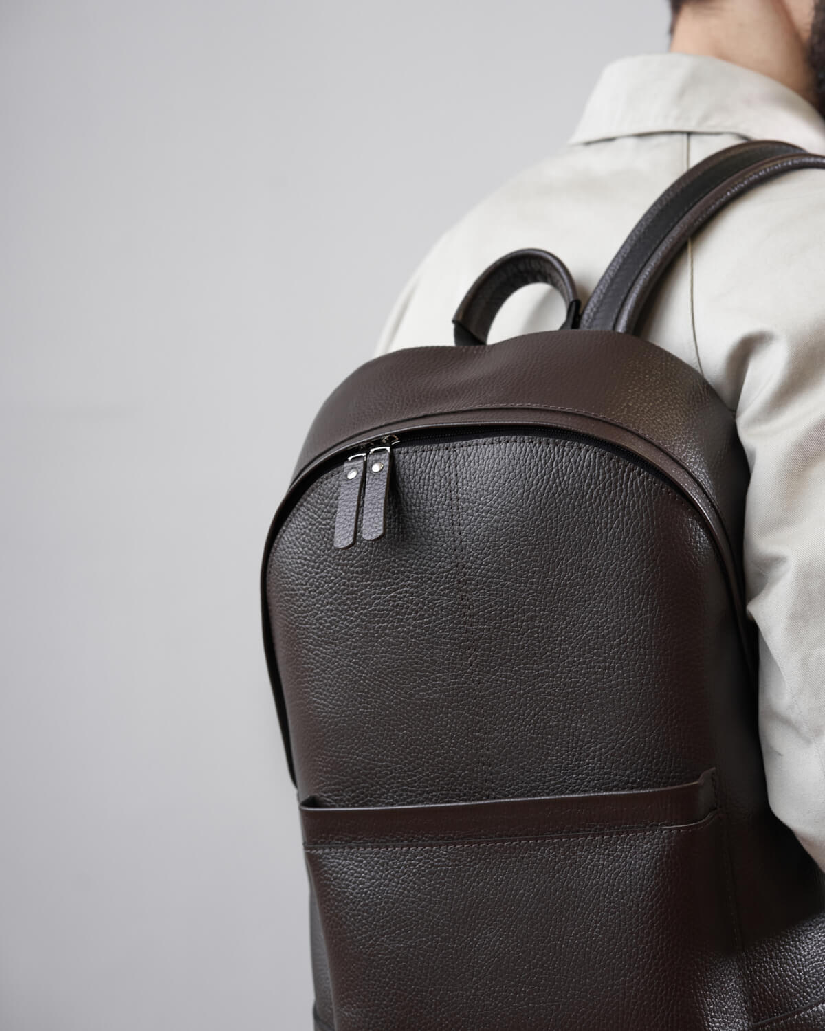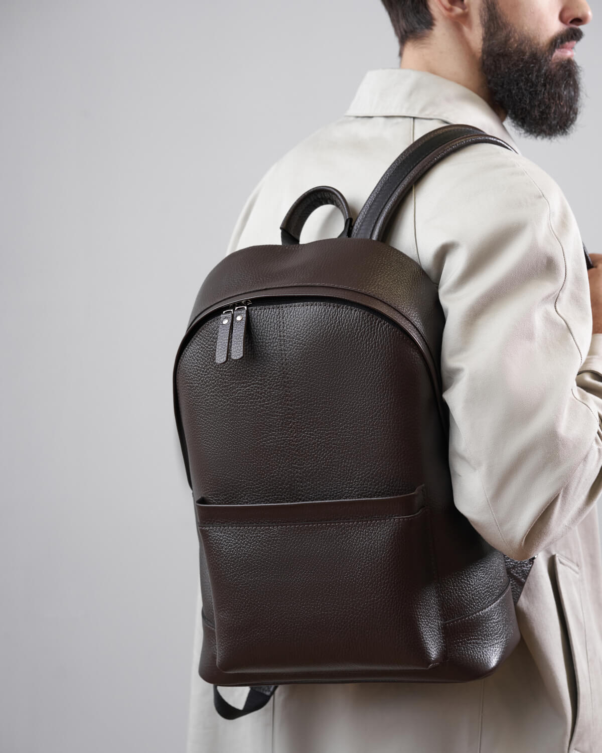 Рюкзак изготовлен из натуральной кожи, держит форму без дополнительного каркаса. При долгосрочном использовании кожа становится более мягкой. Подходит на каждый день и для коротких путешествий. Вмещает спортивную форму, бутылочку воды, документы формата А4, 15-дюймовый ноутбук и необходимый минимум для поездки на пару дней.