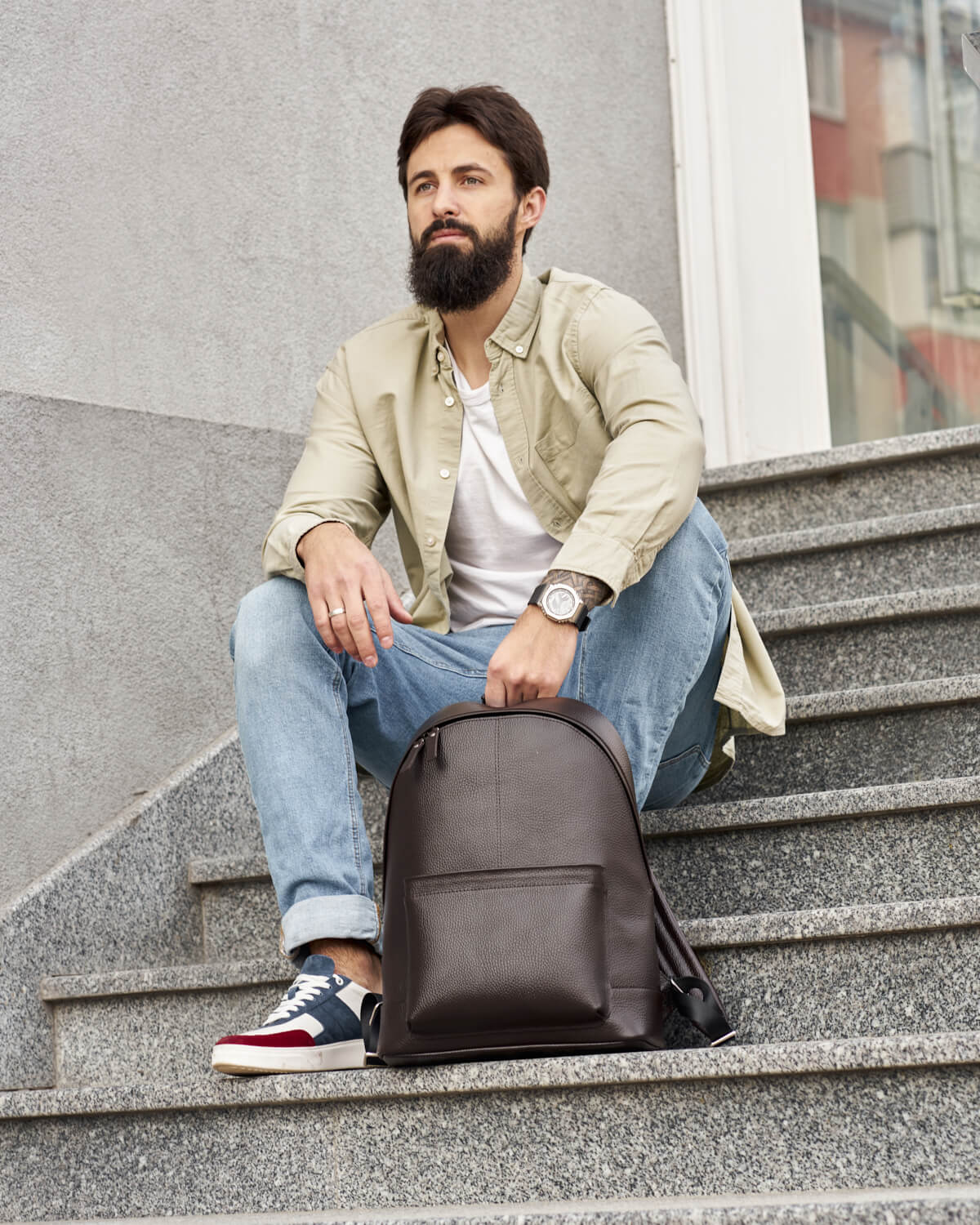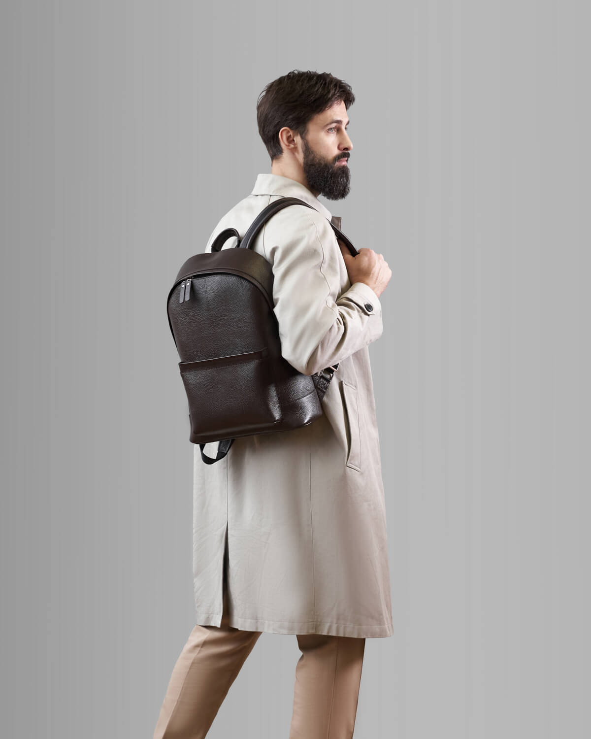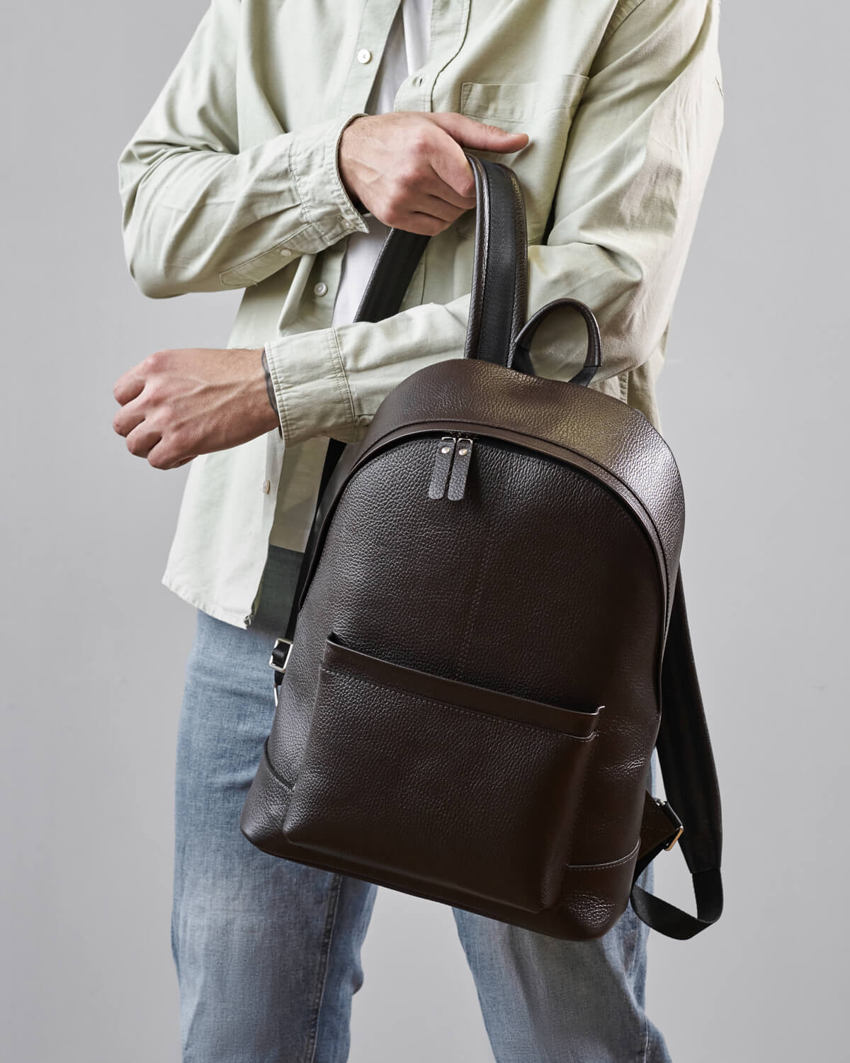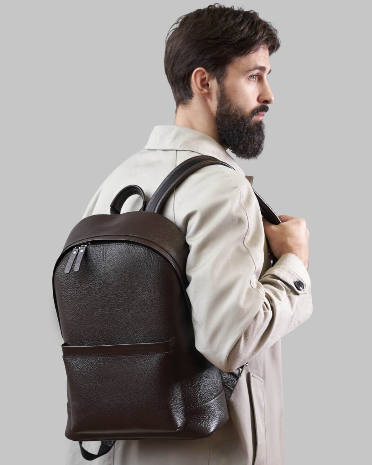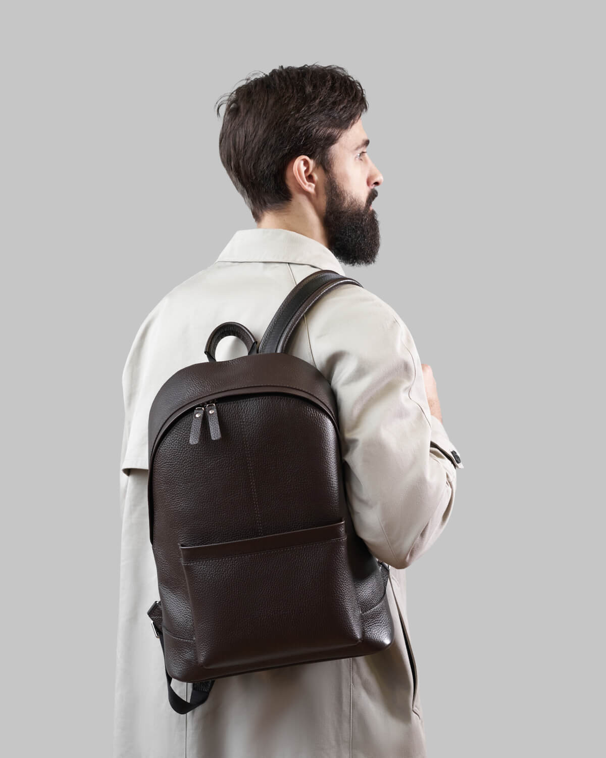 Рюкзак изготовлен из натуральной кожи, держит форму без дополнительного каркаса. При долгосрочном использовании кожа становится более мягкой. Подходит на каждый день и для коротких путешествий. Вмещает спортивную форму, бутылочку воды, документы формата А4, 15-дюймовый ноутбук и необходимый минимум для поездки на пару дней.