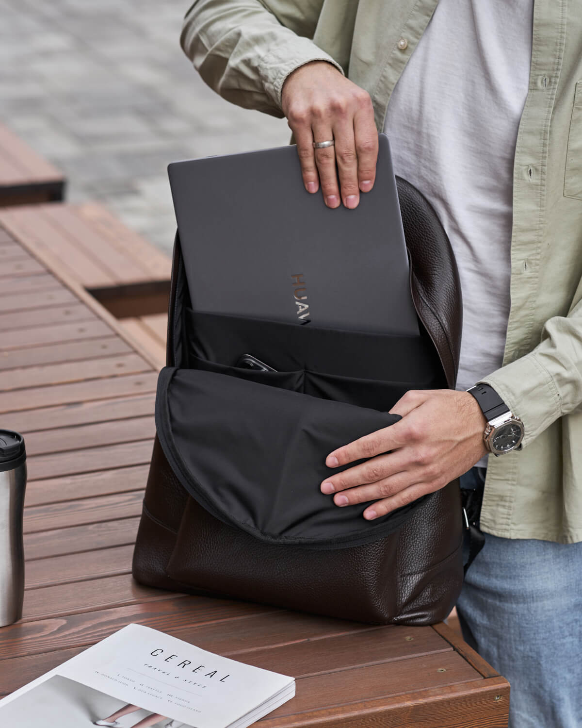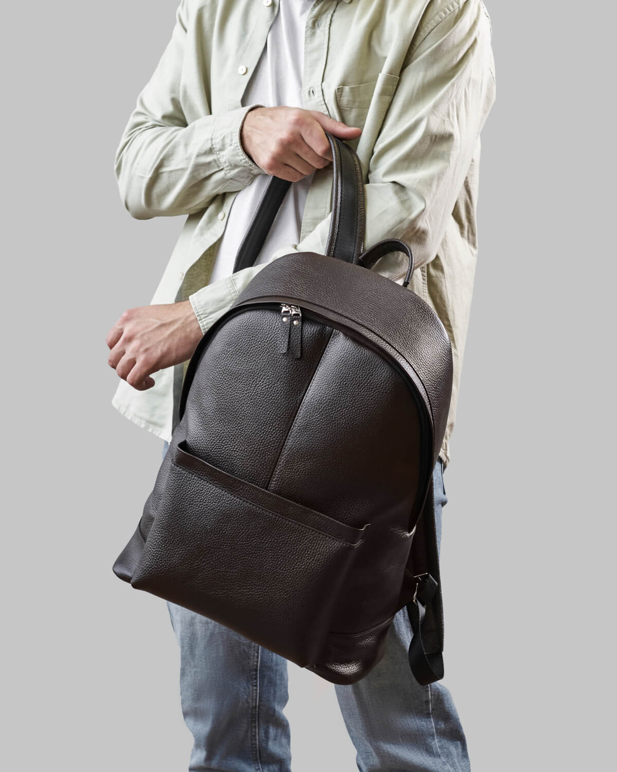 Модель рюкзака GERALD увеличенного размера. Рюкзак изготовлен из натуральной кожи, держит форму без дополнительного каркаса. При долгосрочном использовании кожа становится более мягкой. Подходит на каждый день и для коротких путешествий. Вмещает спортивную форму, бутылочку воды, документы формата А4, 17-дюймовый ноутбук и необходимый минимум для поездки на пару дней.