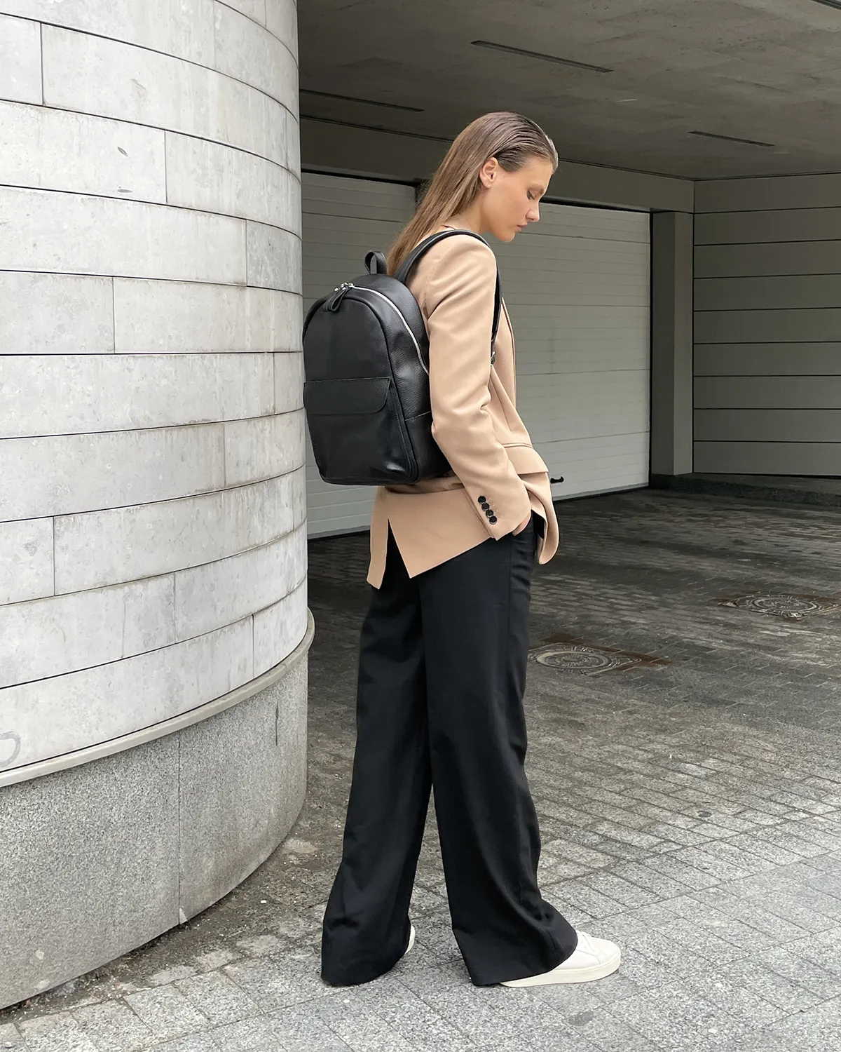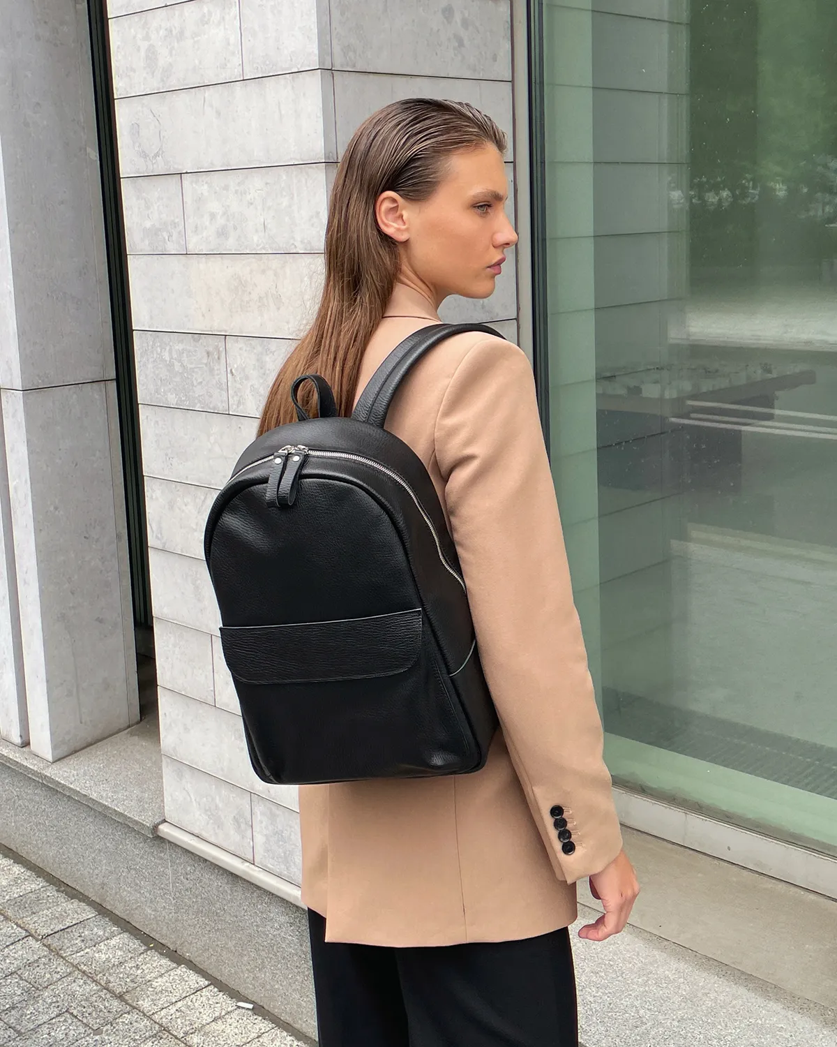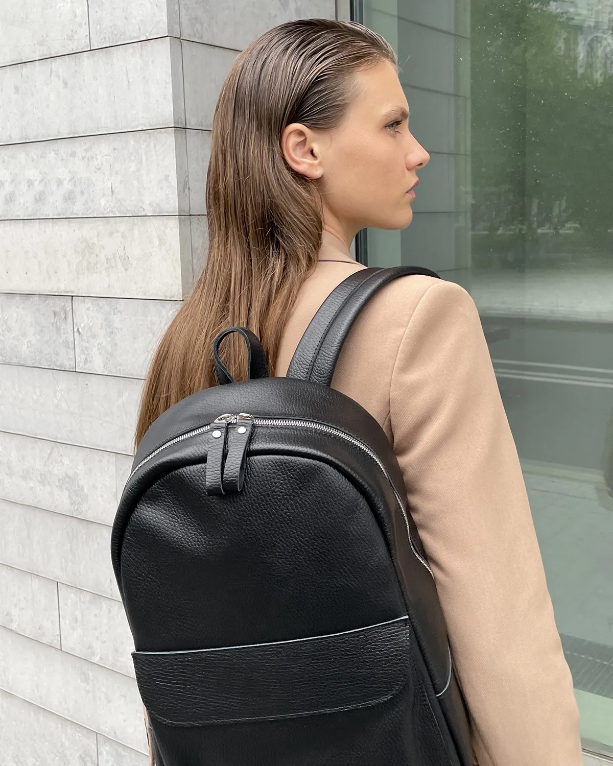 Рюкзак среднего размера из мягкой натуральной кожи. Подходит на каждый день и для коротких путешествий. В него можно положить спортивную форму, документы формата А4, 13-дюймовый ноутбук и необходимый минимум для поездки на пару дней. ⠀