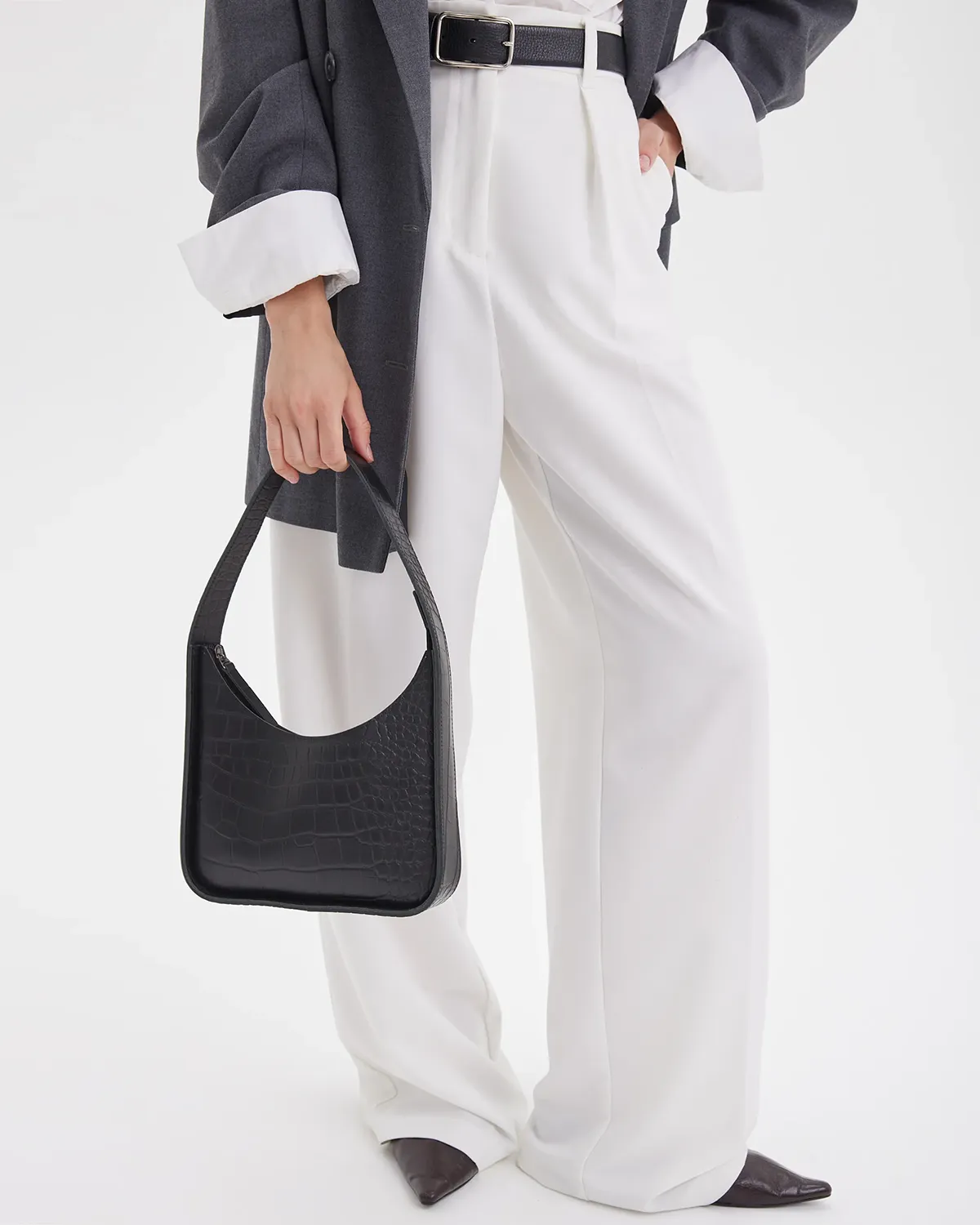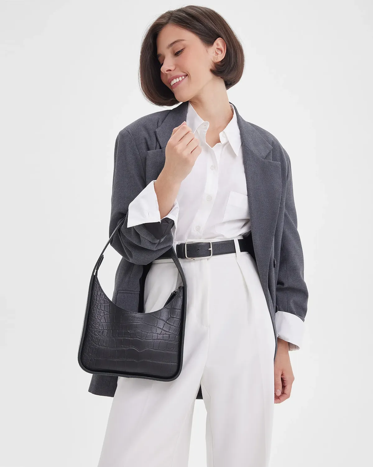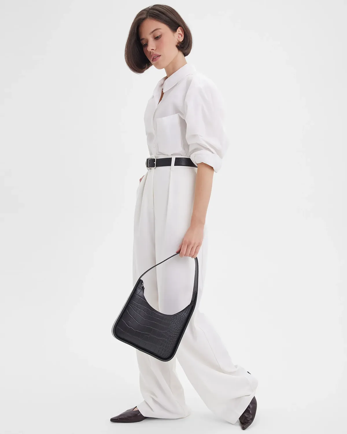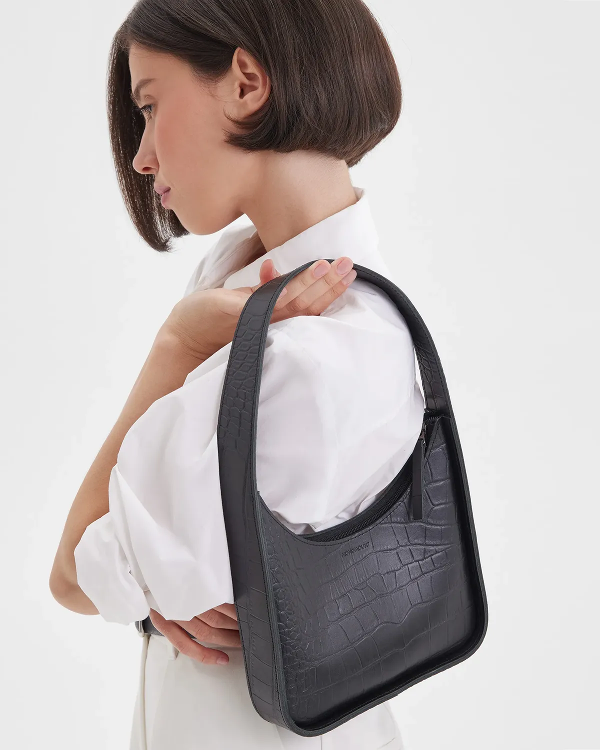 Небольшая кожаная сумка лаконичной формы. Примерная вместимость: телефон, ключи, паспорт, картхолдер, наушники. Изготовлена из плотной кожи, внутри бархатистая кожаная изнанка, одно отделение.