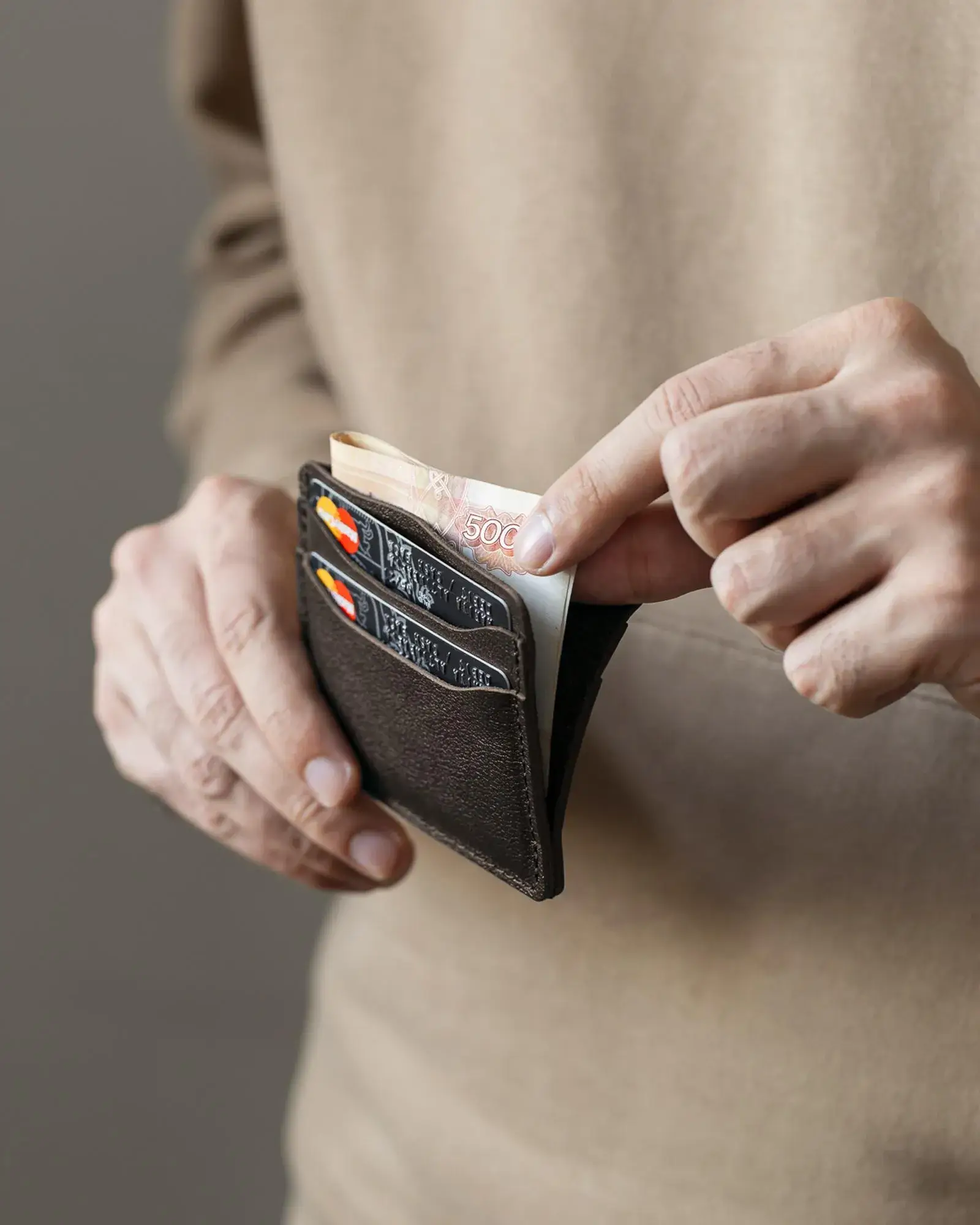 • в картхолдере FLAT четыре кармашка для карт, среднее отделение для купюр, сложенных вдвое, для удобства использования одна сторона без прошивки.