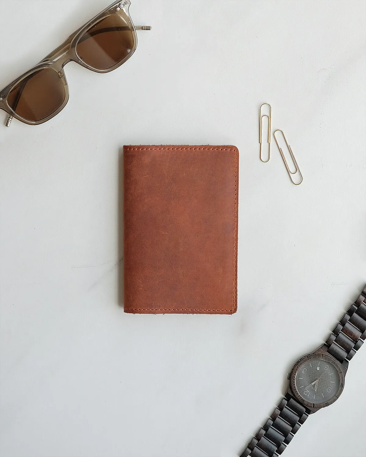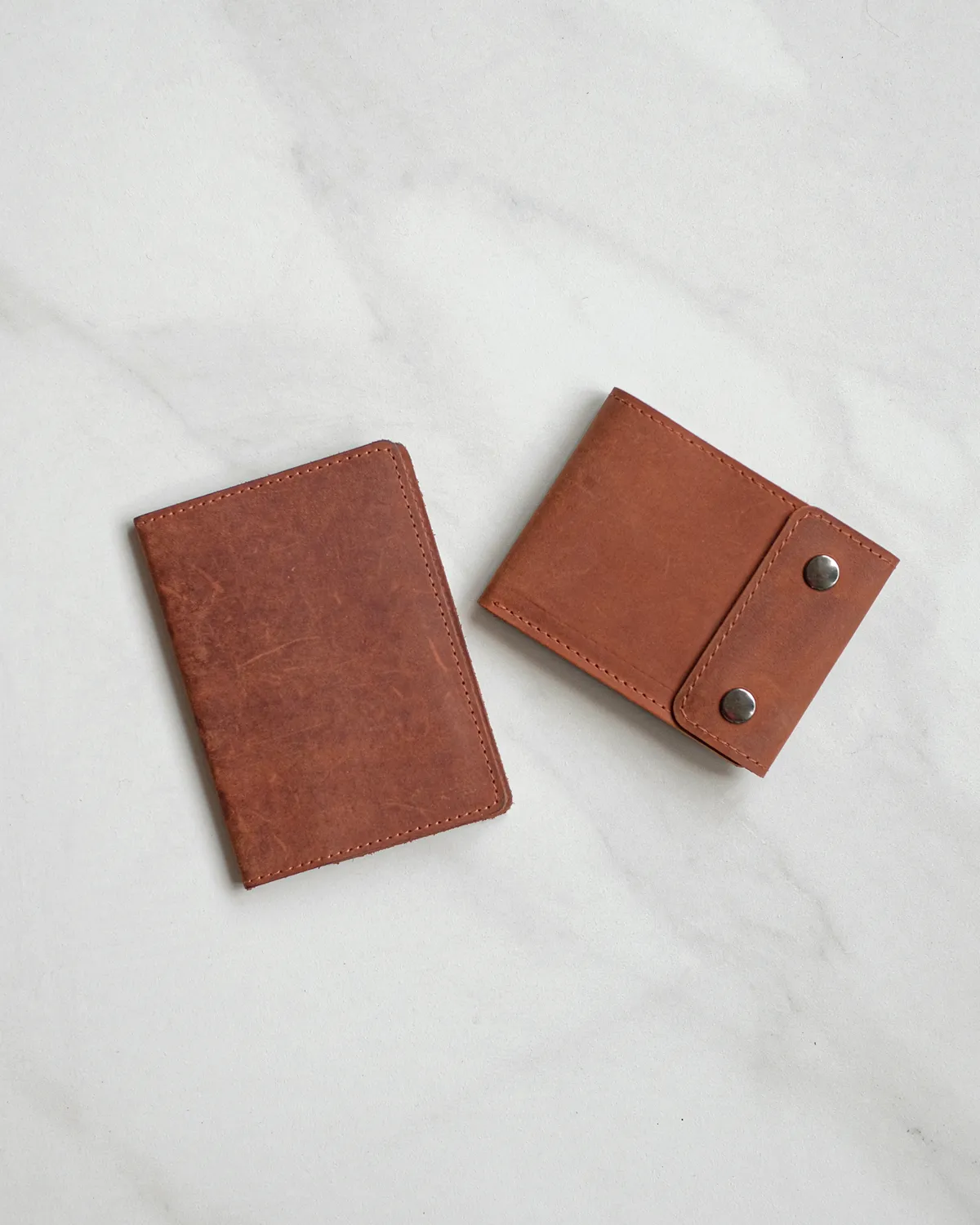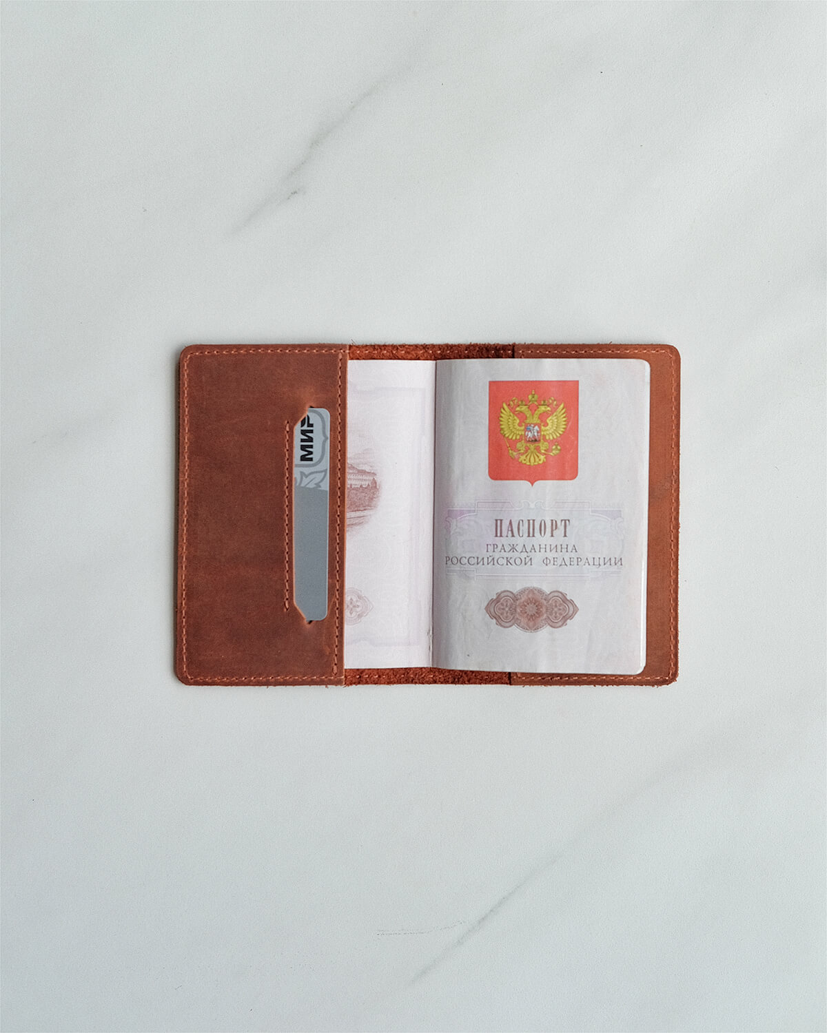 В наборе: кожаная обложка на паспорт Pass Bourbon с кармашками для пластиковых карт внутри и кожаный кошелёк Pocket Zip с отделениями для банковских карт, купюр и монет.