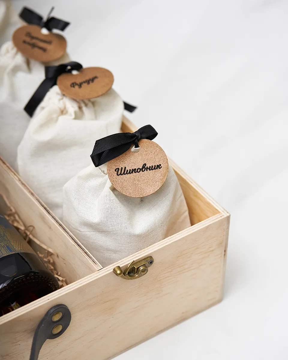 Нанесите инициалы, имя или другую личную надпись на крышку коробочки. Либо выберите один из бесплатных праздничных узоров. Гравировка выжигается лазером. Нажмите кнопку Купить — в открывшемся окне будут варианты дизайна гравировки на выбор. Там же можно ввести свой текст. После оформления заказа вы получите письмо с макетом, чтобы всё проверить перед нанесением гравировки