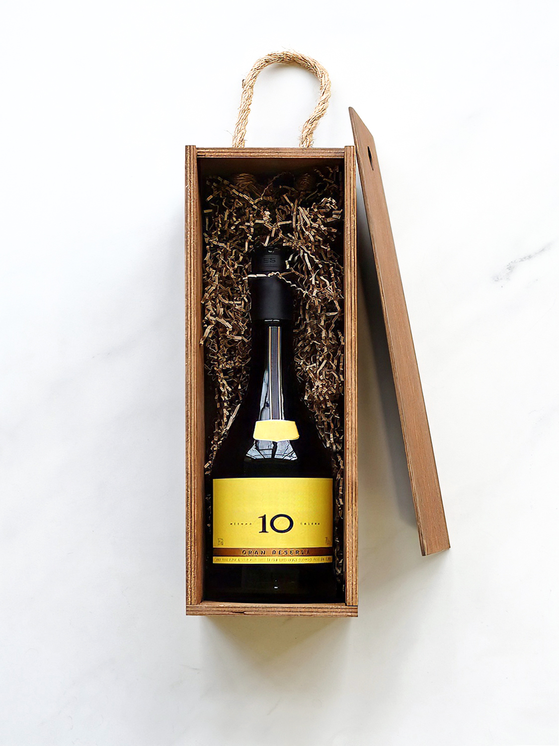 Деревянная универсальная коробка для алкоголя с выдвижной крышкой. Внутри коробку бумажный наполнитель в цвет.