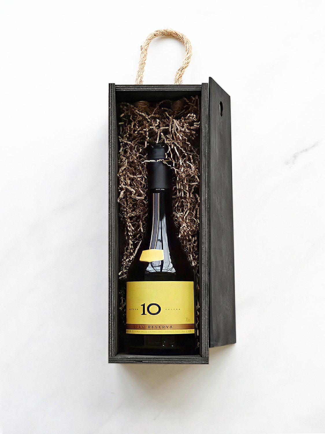 Деревянная универсальная коробка для алкоголя с выдвижной крышкой. Внутри коробку бумажный наполнитель в цвет.